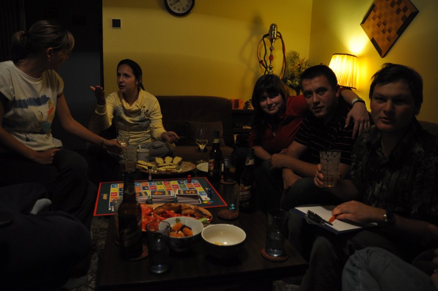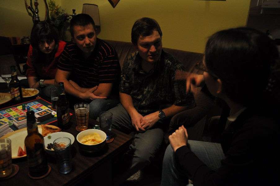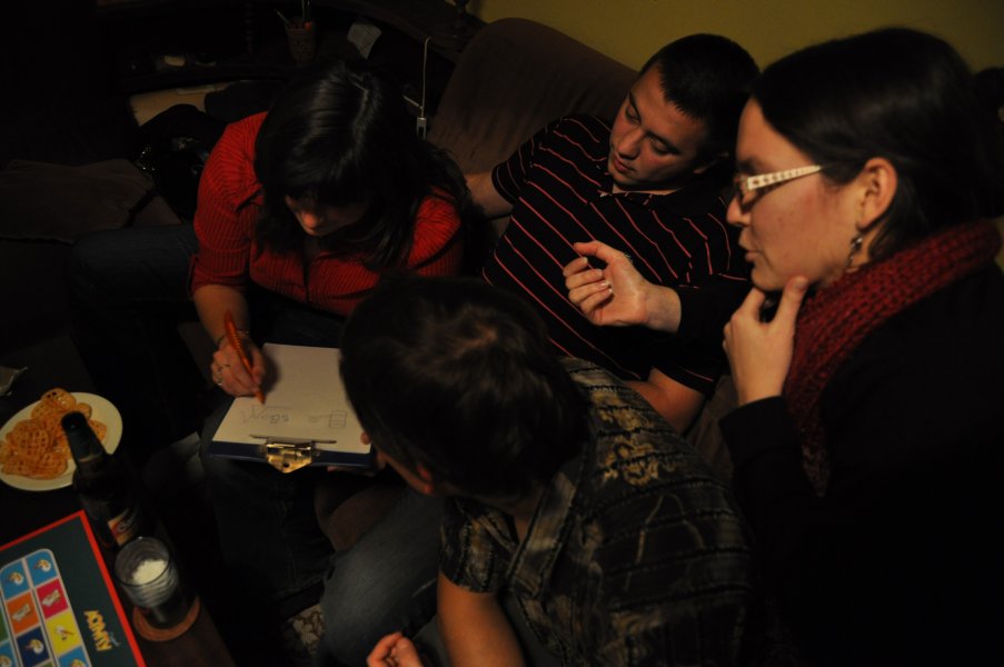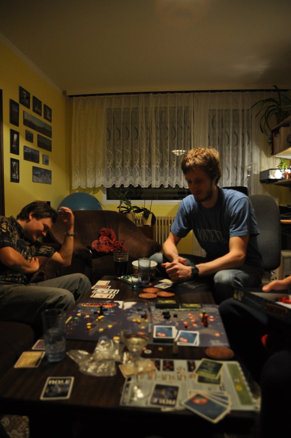Herní večírek doma u Vintrichů. Hráli jsme aktivity a posléze Pandemic.