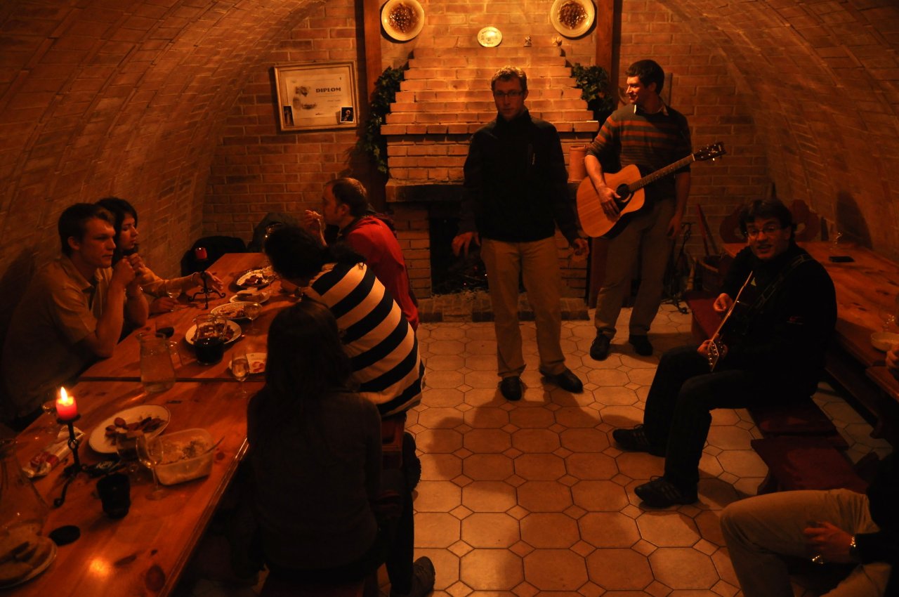 Výjezdní zasedání Spolča Petrov ve sklípku pana Vaculky ve Vacenovicích.