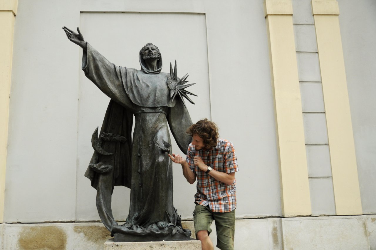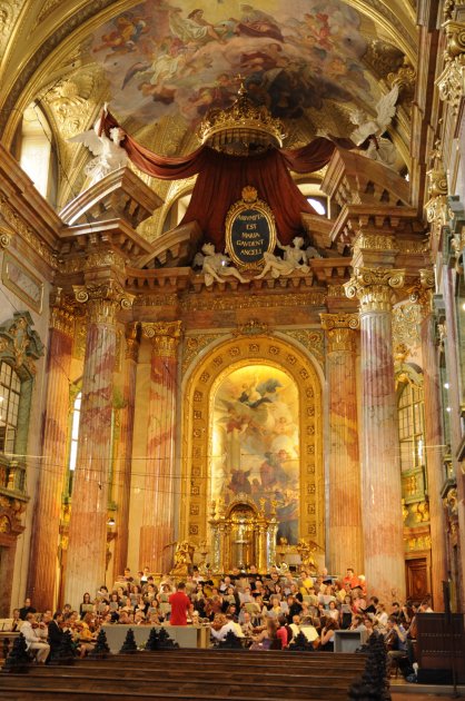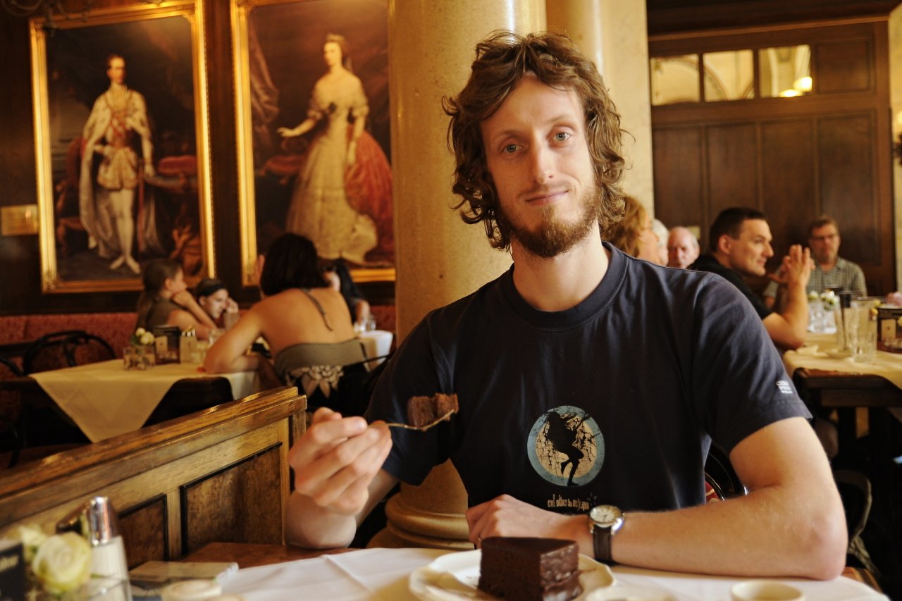 Ryzí turistická poznávačka Vídně. 2x žlutý autobus, 1x nocleh v Happy Hostel, 3x kleiner brauner, 1x Sacher Torte, 6x zapálení svíčky v kostele, 2x mše svatá.