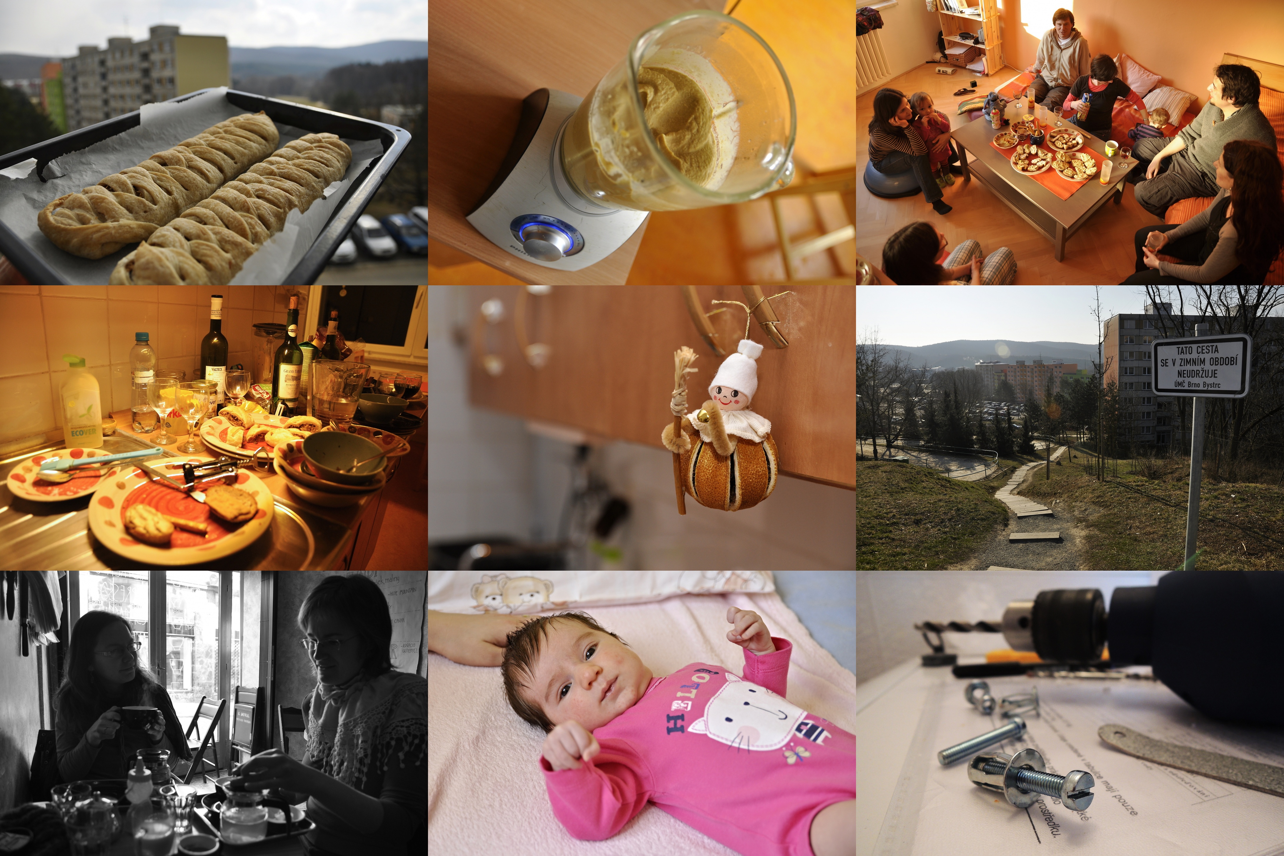 Štrůdl na balkóně / Přichystali jsme pro hosty nějaký hummus / Co jste nám to tu přichystali za hummus?! / Po hostech nám zbylo docela dost hummusu / Maskot akce se usmívá, protože neochutnal náš hummus / Naše milované schody na zastávku šaliny / Po mši tradičně na kafe, tentokrát do mitte / Monička / Hmoždinky do umakartu zafungovaly, ručníky už divoce visí