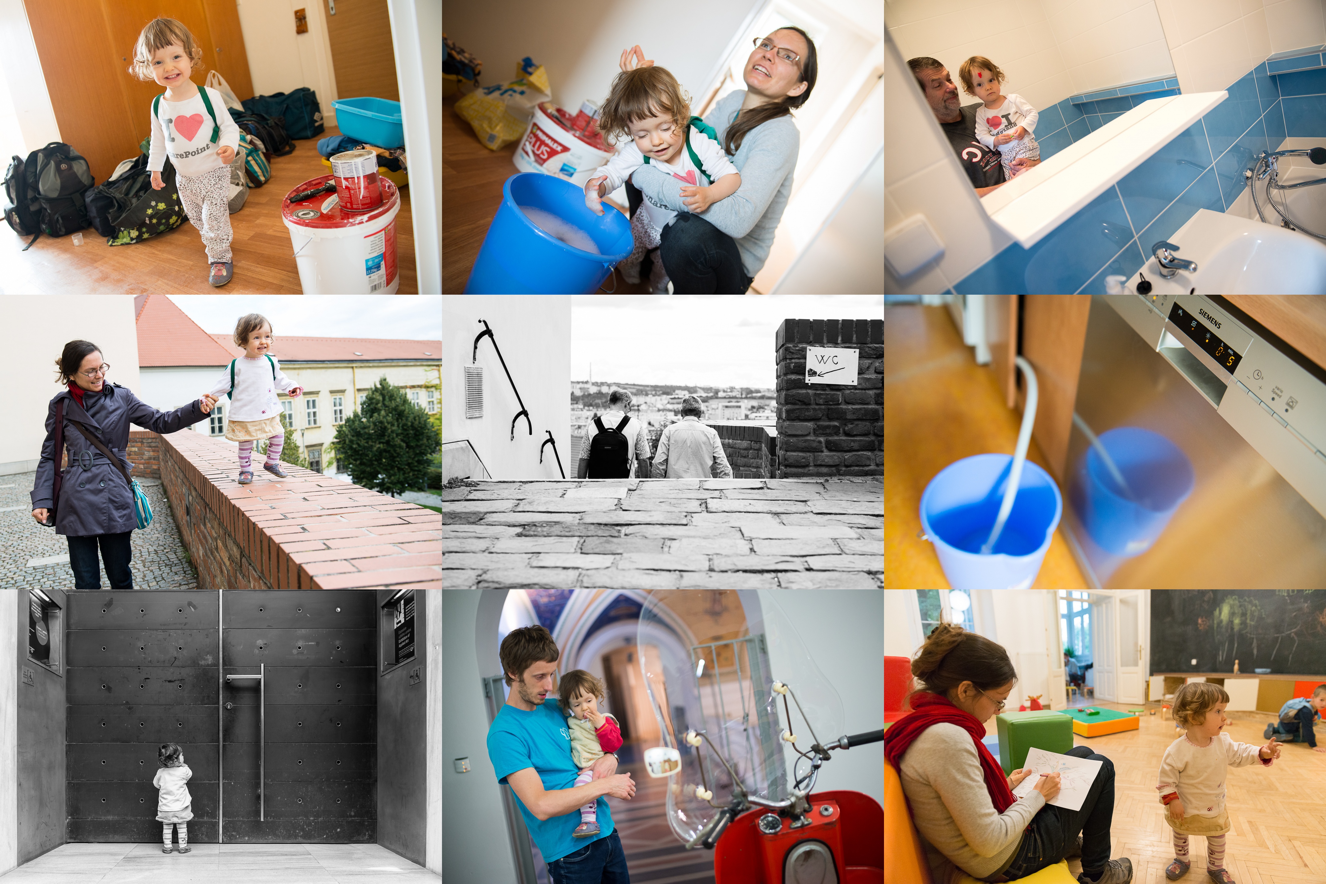 Verunka už se nemůže dočkat, až to tady po těch řemeslnících všechno vycídí / Podlaha se prý nejlépe vytírá holýma rukama / Přísavka na čele Verunce v novém zrcadle obzvláště sluší / Trocha adrenalinu po bohoslužbě / Na veřejné WC nikdy nechoď sám! / Novější modely prý umí vypouštět i rovnou do odpadu, ale nekupte to za tu cenu! / Verunka precizně vyvažuje kompozici / Tom s Verunkou nenachází slova pro tuto věc na výstavě Věci a slova / Bilancujeme dovolenou v Humpty Dumpty - jak jinak než myšlenkovou mapou