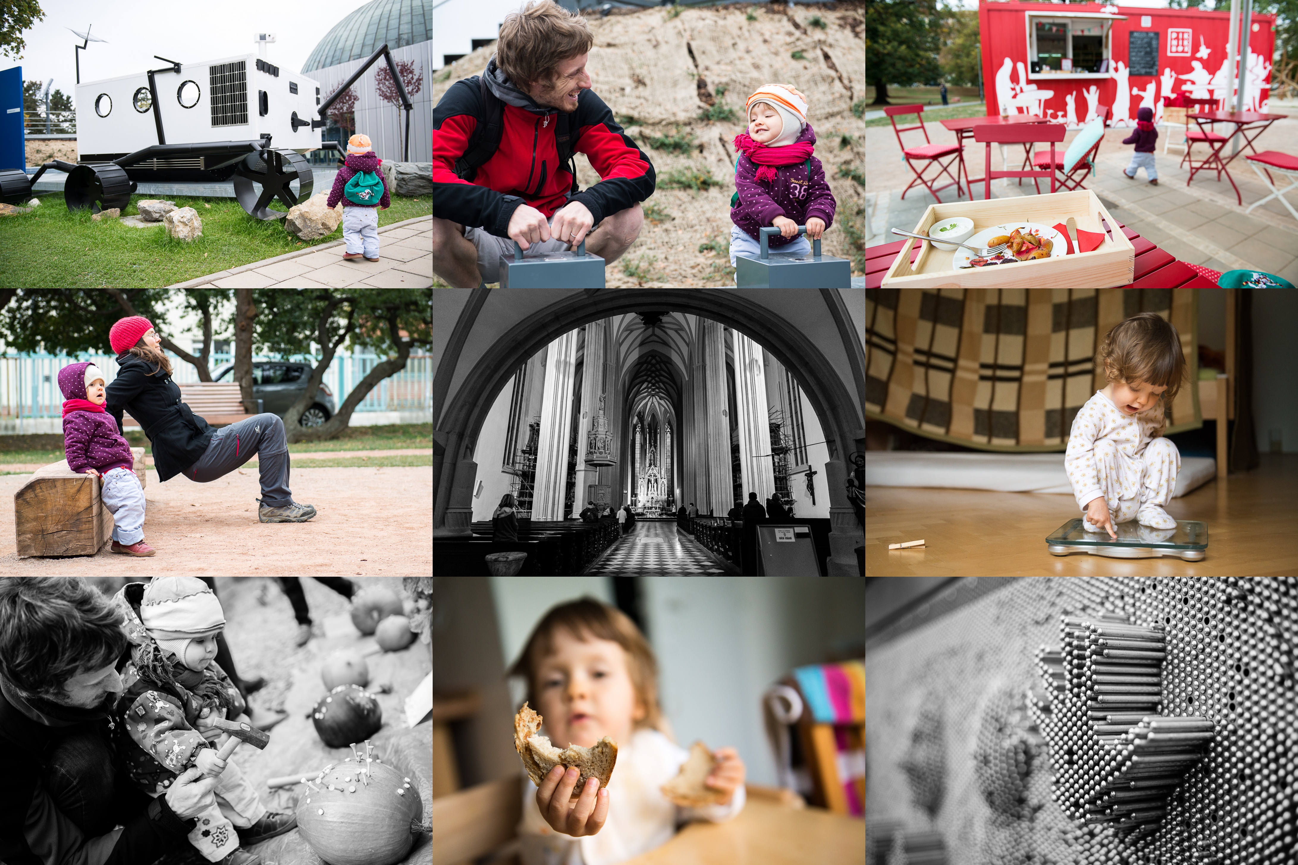 Tak takové auto jsi ještě Verunko neviděla - planetární rover v Kognitoriu / Hrátky s gravitací tamtéž / Za neustálého poskakování testujeme zdravou svačinku v Piknik boxu / Je ti zima? Tak makej! / Kostel u sv. Jakuba - sice ještě s lešením, ale konečně znovu otevřen / Podívej se, zase jsem přibrala! / Poněkud drsná zábava na dýňových slavnostech v Otevřené zahradě / Chleba! kousnout! foťákovi! / Kognitoria se nemůžeme nabažit, tentokrát si hrajeme s 3D skenerem