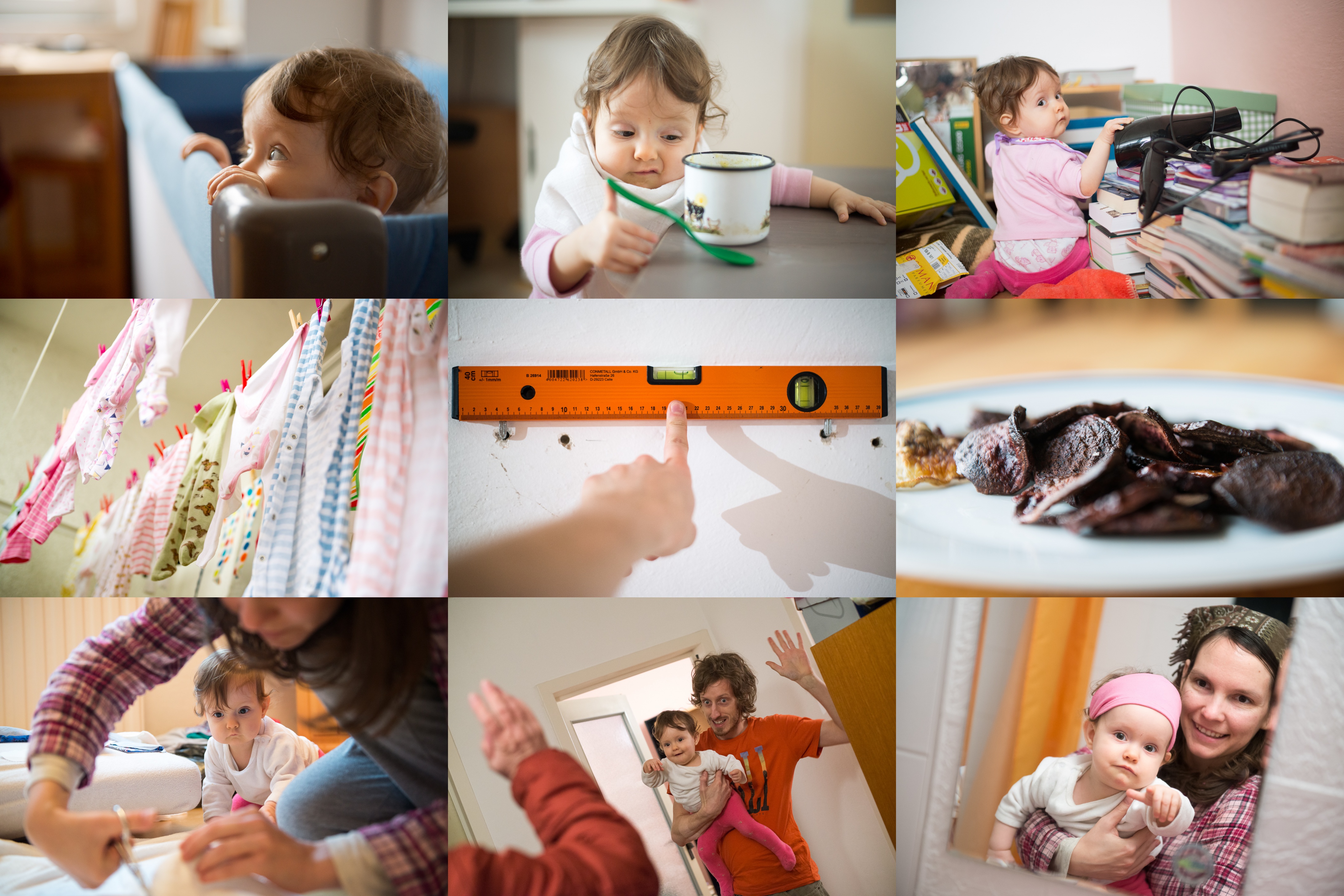 Verunka dohlíží na dodržování bezpečnostních předpisů při přípravě snídaňové kašičky / No už jsem teda u vás měla i lepší kaši / Vyklizená skříň z důvodu odplísnění - ráj pro Verunku hrabalku / Jedno foto na památku, v rámci boje s plísňovým zlořádem totiž pořizujeme sušičku / Kdo by na takovou prkotinu volal hodinového manžela, že? / Pravé domácí řepelky, připálené, ale naše / Verunka má upřímnou obavu, že si maminka ustřihne prst / Verunko, udělej babičce pá pá / Verunka má ukazovací období, nejčastěji nás upozorňuje na křivý strop
