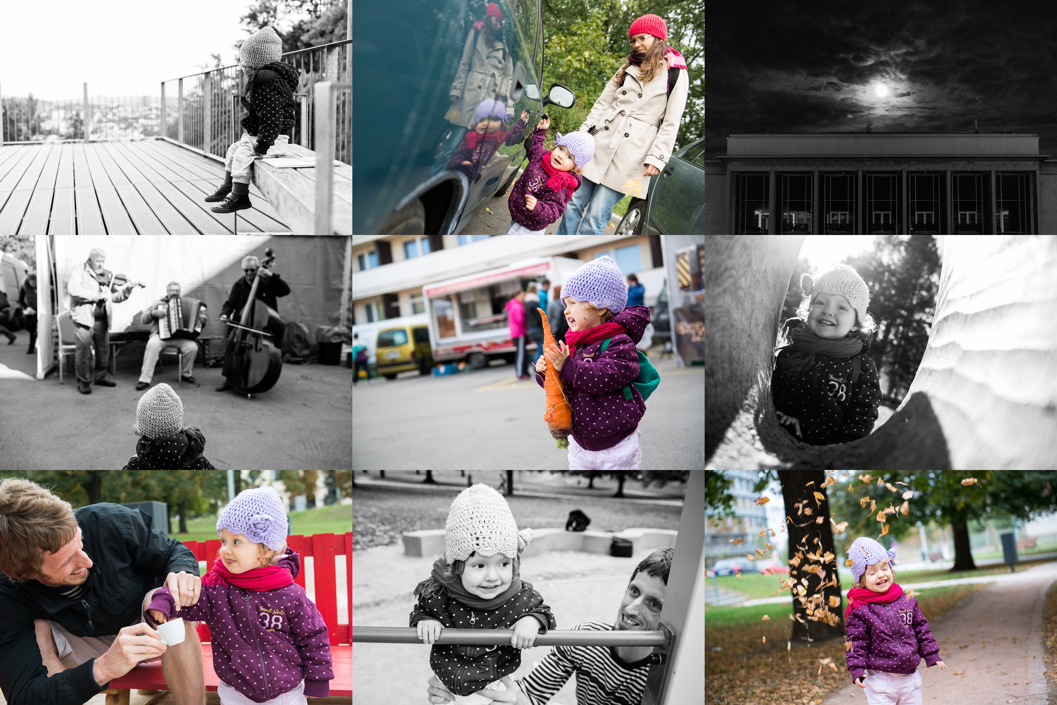 Ceny za správné odpovědi v hitparádě radia Proglas vyzvednuty, nyní se můžeme v klidu kochat naším oblíbeným výhledem / Zamknout, odemknout, odemyky, zamyky! / Tento večer se k dramatu neschylovalo uvnitř, nýbrž nad Janáčkovým divadlem / Munzinkanti na slušně našlápnutých bystrckých farmářských trzích / Pózování s obří mrkví zřejmě nebude Verunčinou oblíbenou kratochvílí / Zkoumáme sochu u přehrady / Tvrdý boj o šálek výborného espressa z Piknik Boxu v Björnsonově sadu / Momentálně všichni frčíme na street workoutu - uvidíme, jak dlouho nám to vydrží / Verunka opilá podzimem