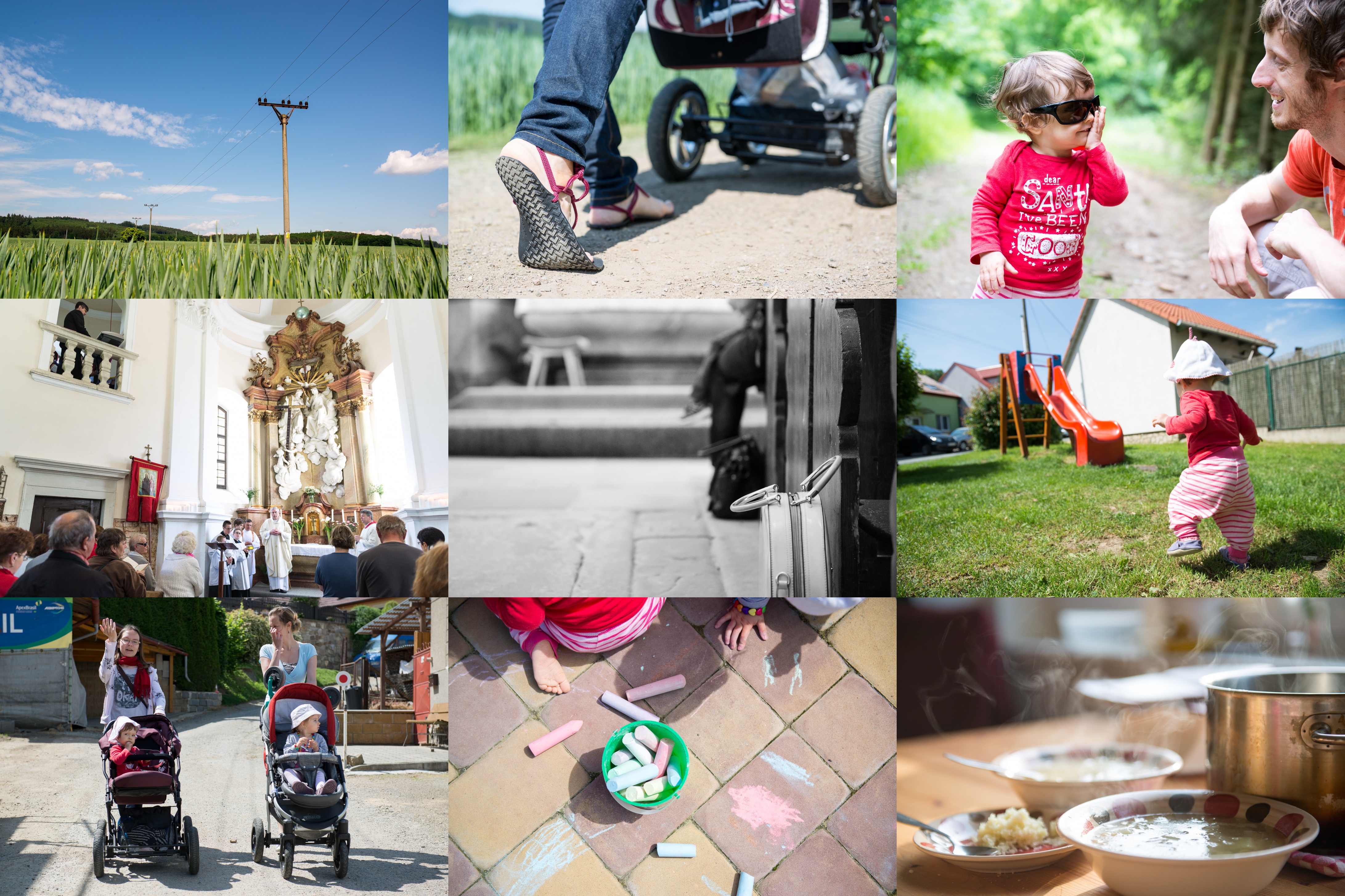 Jinačovické lány / Barefoot sandále pořád nějak ne a ne uvázat správně / Tati, ty jsi najednou nějak hezčí! / Exkluzivní pohled do interiéru rosické kaple sv. Trojice / Elegance na rosické pouti / Ke klouzačce to Véra bere úprkem / Matky! / Zátiší s křídami / Zase česnečka?