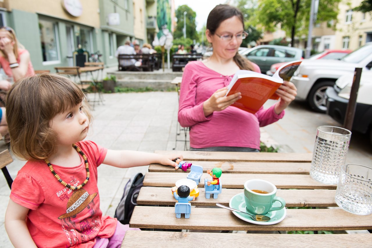 Pouťová idylka / Po dvou letech opět na ruském kole, tentokrát nám žádná ponožka dolů nespadla / Sourozenecké dotýkání / Na Park festivalu jsme si dali výbornou řepovou pomazánku / Hele, ten vypadá, že bude hrát Boba Dylana... a taky že jo! / Retro popkornovač v jednom z mnoha gastro stánků / Teo si není úplně jistý, jestli si chce vlézt za Verčou do vaničky / Takových návštěv jen houšť! / Verunka dělá parádu se svou kavárenskou sadou