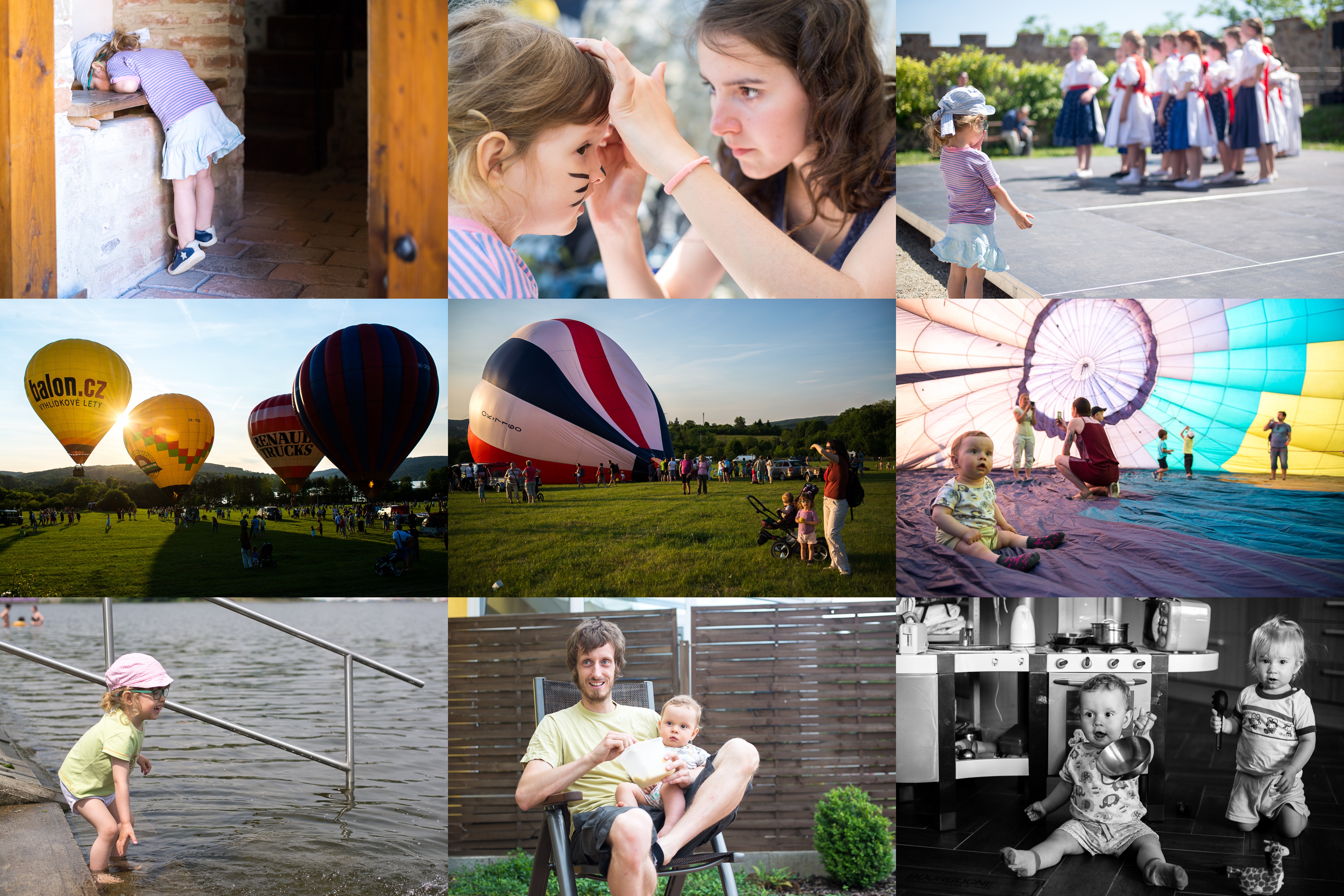 Varování "bacha ať nespadneš do záchoda" má na hradě úplně jinou váhu / Na řecké sobotě krásná řekyně maluje Verče na obličej řeckou kočičku / Verunka by nejradši skočila na pódium, asi je nejvyšší čas ji přihlásit do nějakého souboru / Balloon Jam měl letos opravdu luxusní počasí / Verča svolila přiblížit se k balónům o něco více než před rokem... / Ale dovnitř do balonu si troufl jen Radovánek / Nesměle startujeme koupací sezónu / Podvečerní pohoda v Rosicích / Radovánek s Linďou se zřejmě chystají do pořadu Prostřeno