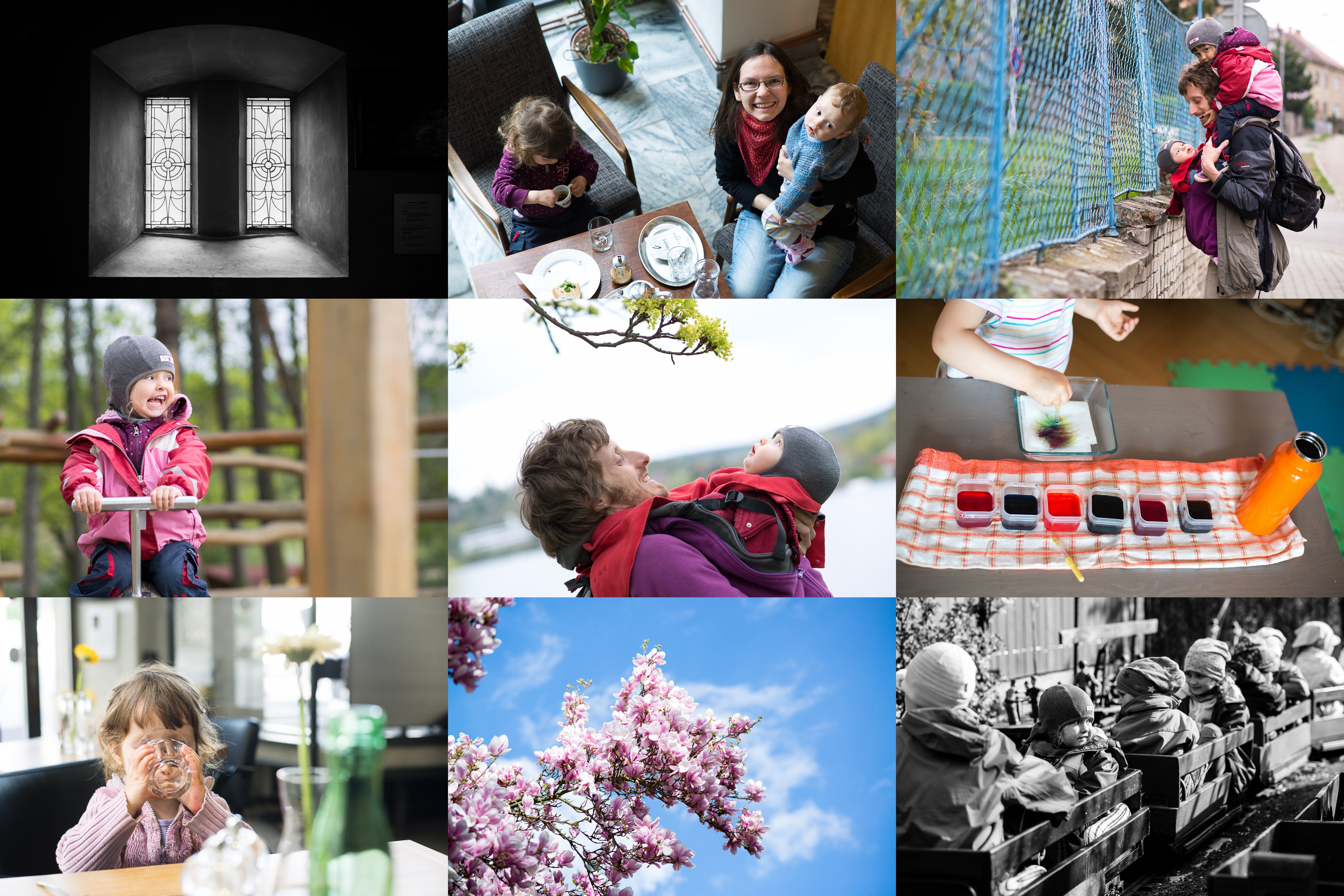Za oknem jsou Husovice / Verunka využila chvilkové nepozornosti a zkoumá hustotu cremy ukořistěného espressa / Vánoční stromeček v dubnu? Proč ne... / Houpání, houpání, to je legrace / Radovánek je u vytržení z toho jak všechno pučí / Hrátky s potravinářskými barvivy a kapátkem / Verunka hledá pravdu na dně sklenice / Obřanské magnolie / Na zahradní železnici zde mají dokonce i opravdický tunel!