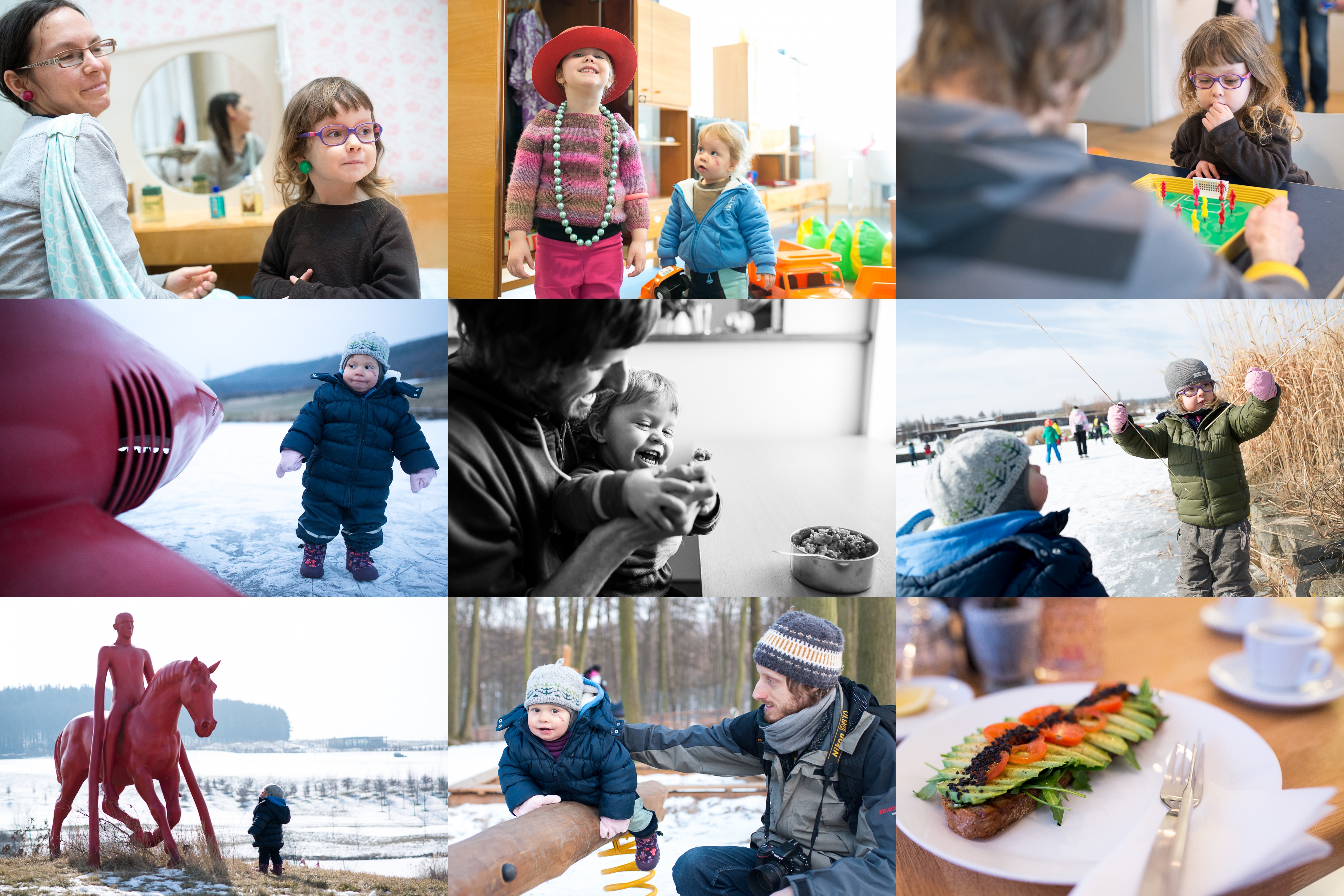 Interaktivní výstavy máme nejradši :-) / Radovánek samým údivem málem upustil tatrovku / Na tahu je Verunka / Ale ty zuby fakt nejsou pravý, že ne? / Veselá snídaně ve farní kavárně / Brusle nemaje, děti se baví aspoň rákosím, zatímco maminka piluje přešlapování pozadu / Setkání / Poprvé na novém dětském hřišti "u prasat" / Víkend zakončujeme topinkou s avokádem, mňam!