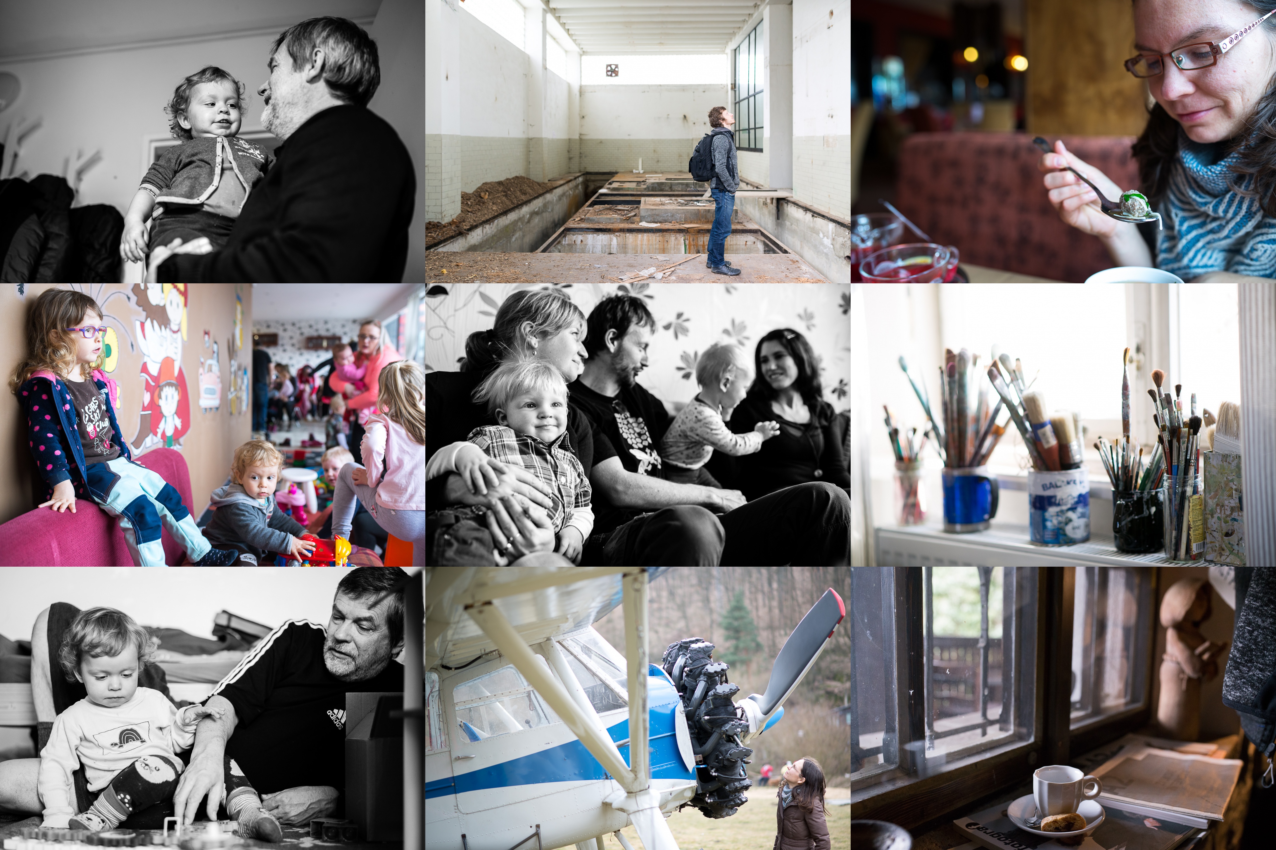 No dobře, tak já se s Tebou teda budu kamarádit / Urban explorer / Knedlíček v hotelové restauraci chutná úplně jinak / V této kavárně děti volně pobíhají mezi stoly a občas si jdou odpočinout od rodičů do dětského koutku / Shledání po letech / Na workshopu experimentální malby je potřeba mnoho různě velkých štětců / Pohoda s dědou / Žena u vrtule / Bylo narváno, ale nakonec se pro nás jeden malý stoleček našel
