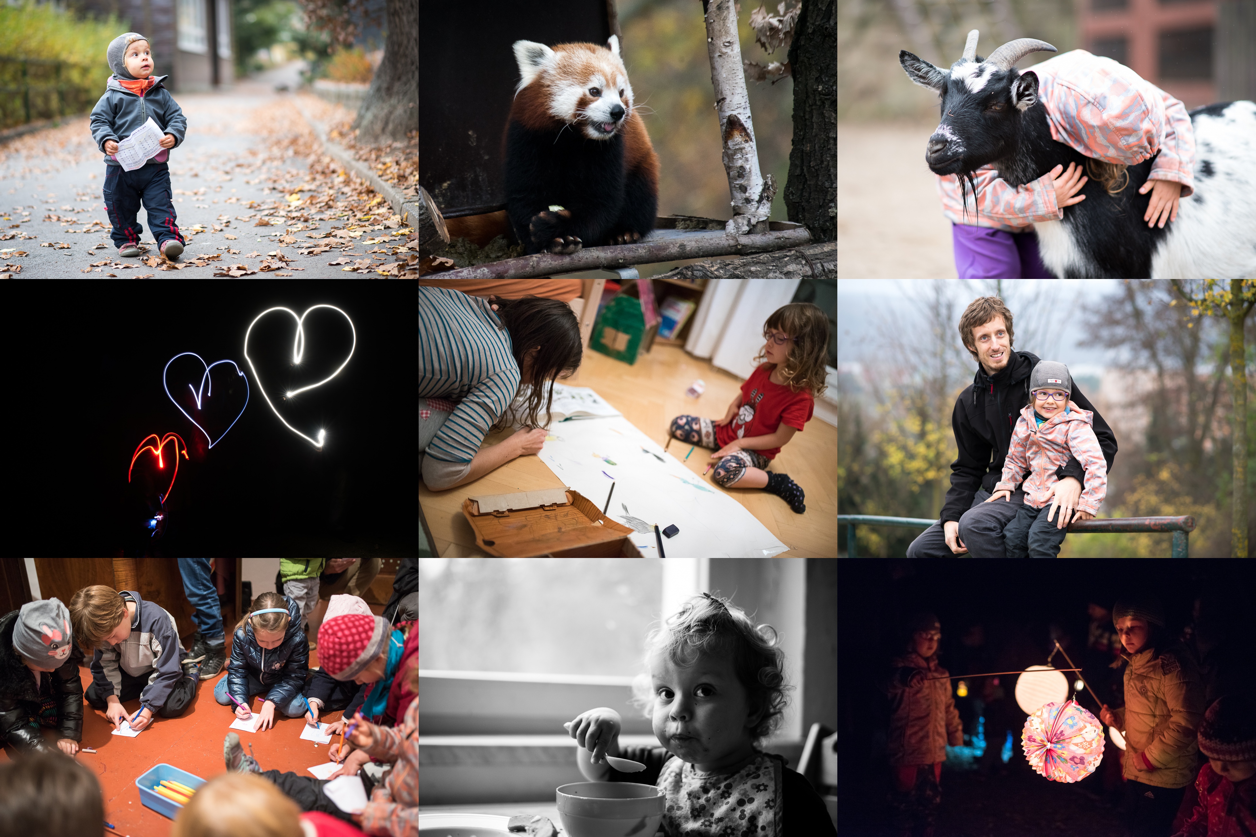 Podle mapy by to měl být krkavec, ale tohle vypadá spíš jako sova?! / To je samá bříza, to se nedá žrát, kde je tady nějaký bambus?! / Jestli to nebude láska... / ...je to láska! / Nakresli si svého ptáčka / Šalina nám těsně ujela, tak já vám děcka ukážu, jak se zevluje na zábradlí, což? / A teď namalujte pytlík plný bonbónů / Byla by to škoda ostříhat takovou krásnou kštici, tak si Radovánka zdobíme sponkou :-) / Vyrazili jsme na výzvědy do lesní školky Šiška