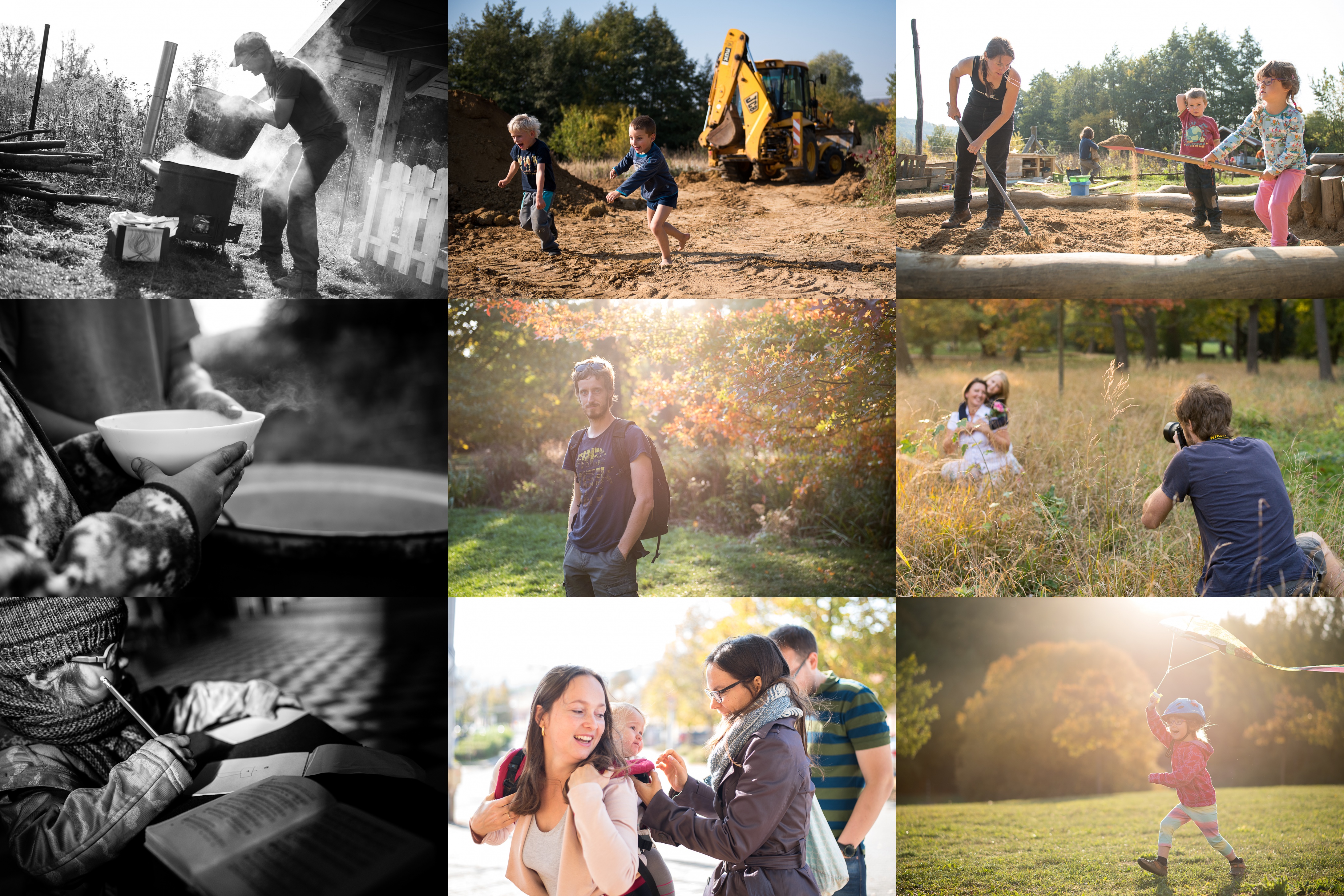 Naše první školková brigáda začíná - je potřeba připravit kamna, na kterých se bude vařit polévka / Ještěže tuto klukovsko u zábavu neviděly maminky :-) / To se to bude bábovkovat! / Výdej polévky s osobním přístupem / Vybíráme fotolokality - tady by to šlo, jen je potřeba přidat na výrazu / Ale tady je to ještě lepší - rychle cvakej, než to sluníčko zaleze! / Verunka našla skvělý způsob, jak se zabavit při bohoslužbě / Alice zjevně neoplývá přílišnou důvěrou v Lenčinu schopnost utáhnout Manducu / Počasí je na draka