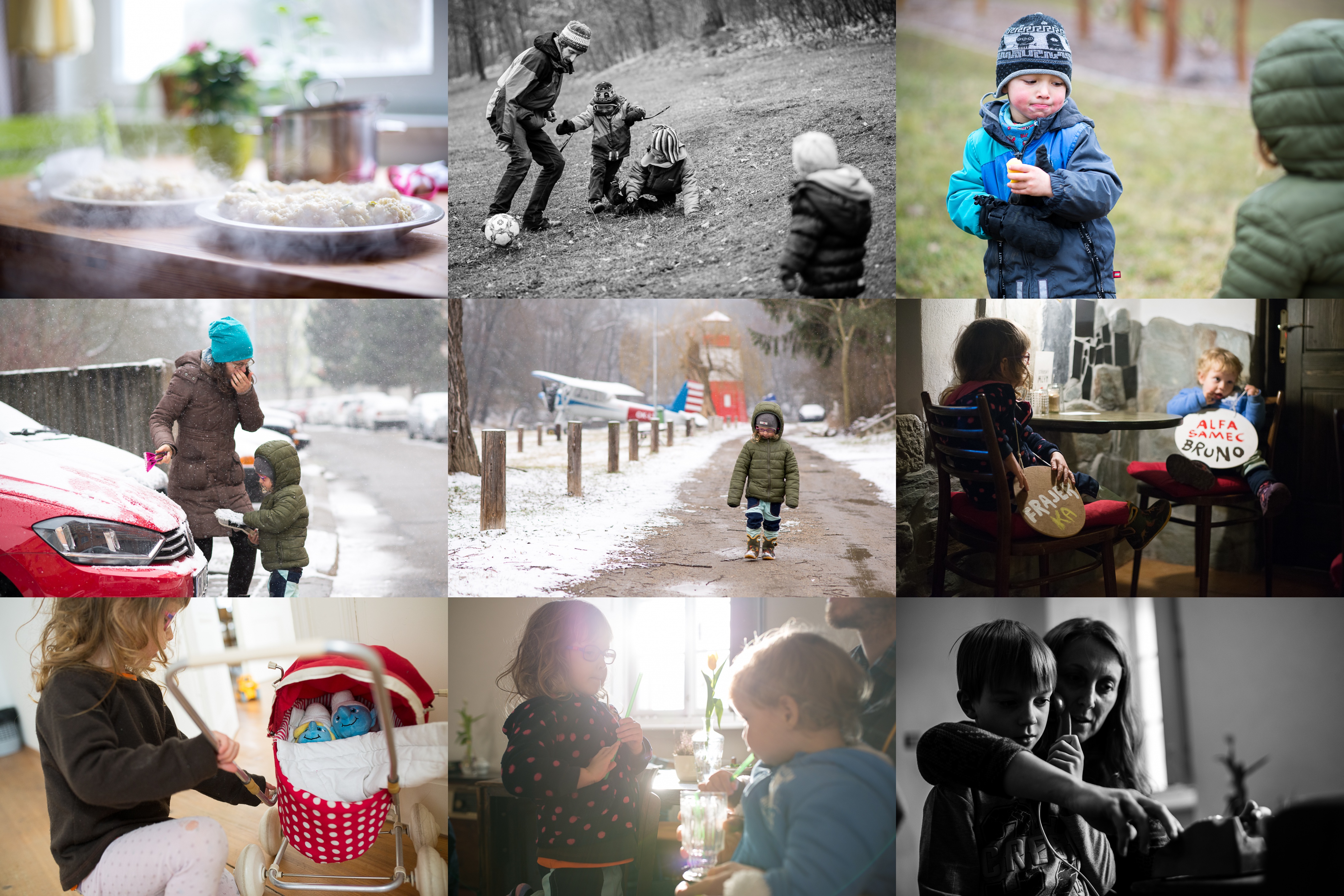 Pálí to, pálí to! / Fotbálek na blátíčku / A takhle Vítkovi zrudnou tvářičky, kdykoliv se potká s naší Verunkou ;-) / Tatínek z bezpečí auta dává venkovní četě pokyny, kde je ještě potřeba zabrat / Scéna s letadlem a majákem / Jako by tu ty cedulky byly přímo pro ně :-) / Různorodá směsice hraček ve farní kavárně výborně rozvíjí fantazii / Kde mají brčka, tam je nám hej / A takhle jsme, Šimone, kdysi opravdu točili a točili, až jsme se vytočili