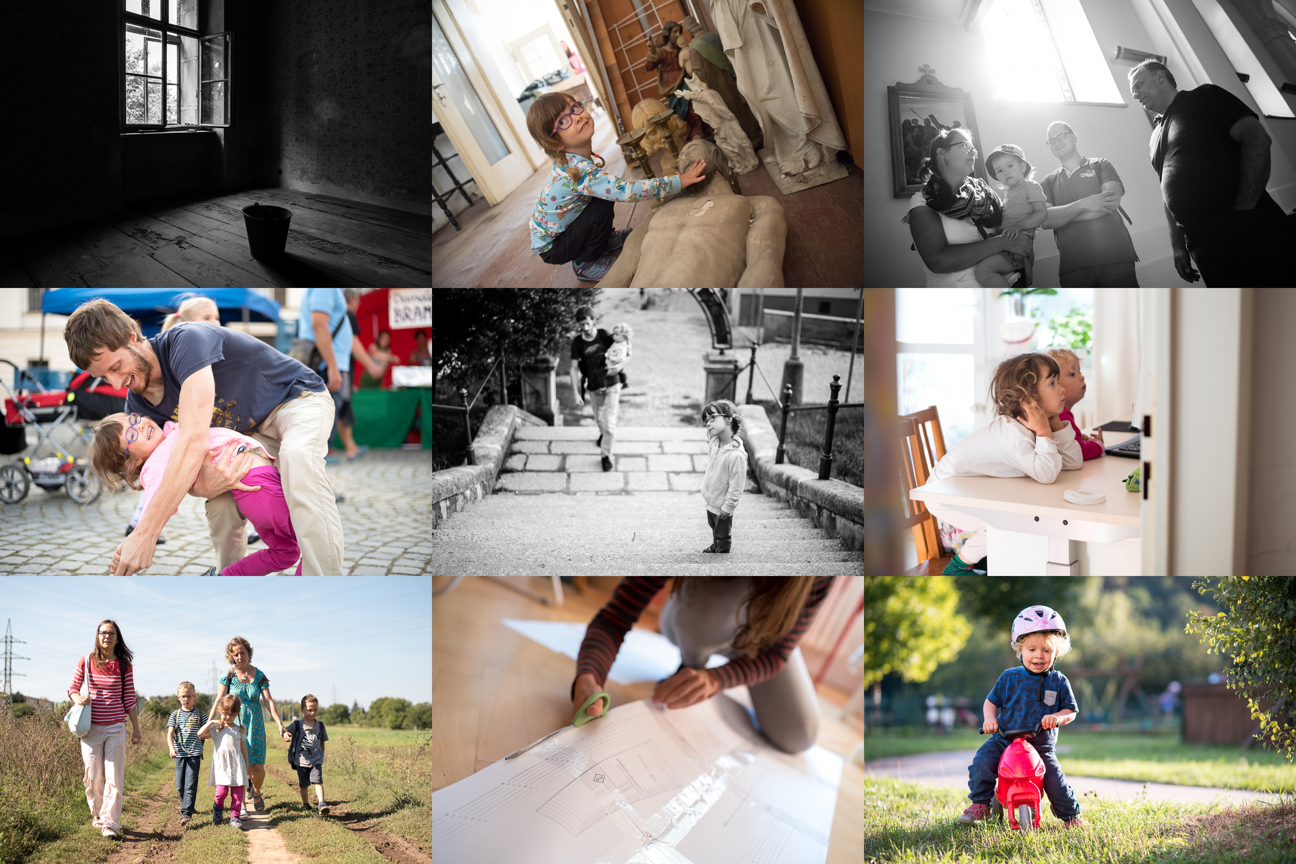 Je tu sice ještě práce jak na faře, ale jednou to tady bude krásné / Dotkni se Boha i Ty! / (oknem krumvířského kostela) osvíceni / Rozjíždíme to na česnekových slavnostech, Verunka naštěstí nic s česnekem nejedla / Chce se mi vyjít ty schody, nebo nechce se mi vyjít ty schody? / Denní příděl princezen a stavebních strojů na Youtube právě začíná / Nedělní obědo-piknikový výlet právě začíná / Prý to budou kalhoty! / No jo, to bylo jasné, že časem přejde na off-road