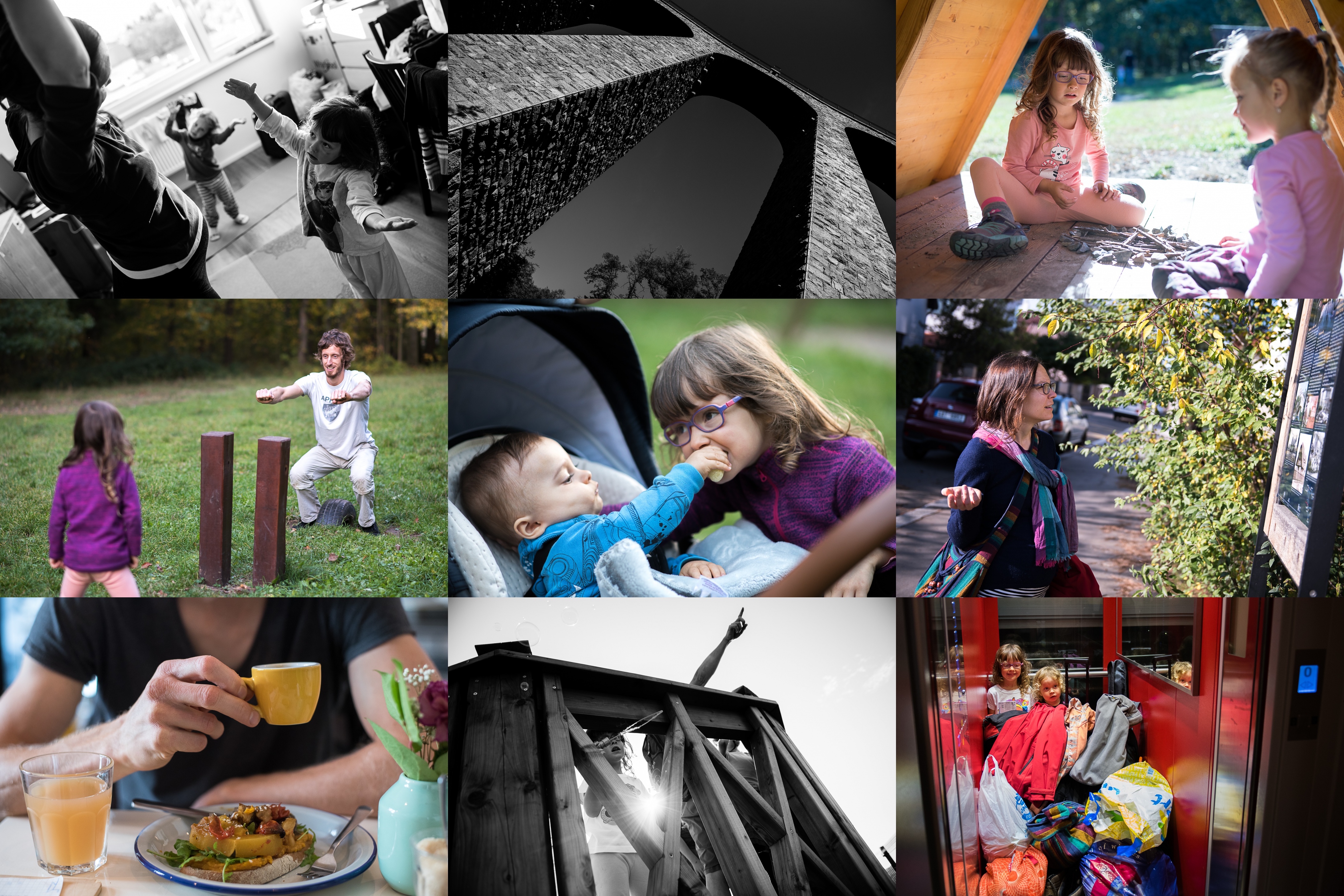 Kdo by to byl řekl - ke cvičení se nechají inspirovat skoro vždycky / Železniční viadukt Žampach / Praktiky z lesní školky si Verunka nosí s sebou i na pražská sídlištní hřiště / Houpání na imaginární houpačce nečekaným způsobem posiluje kvadricepsy / Matýsek se dělí rád / Procházíme strašnickou naučnou stezku znovu, tentokrát opačným směrem / Tvoje máma / Dělat bubliny z vyhlídky / Opravdu jsme s sebou měli tolik věcí??