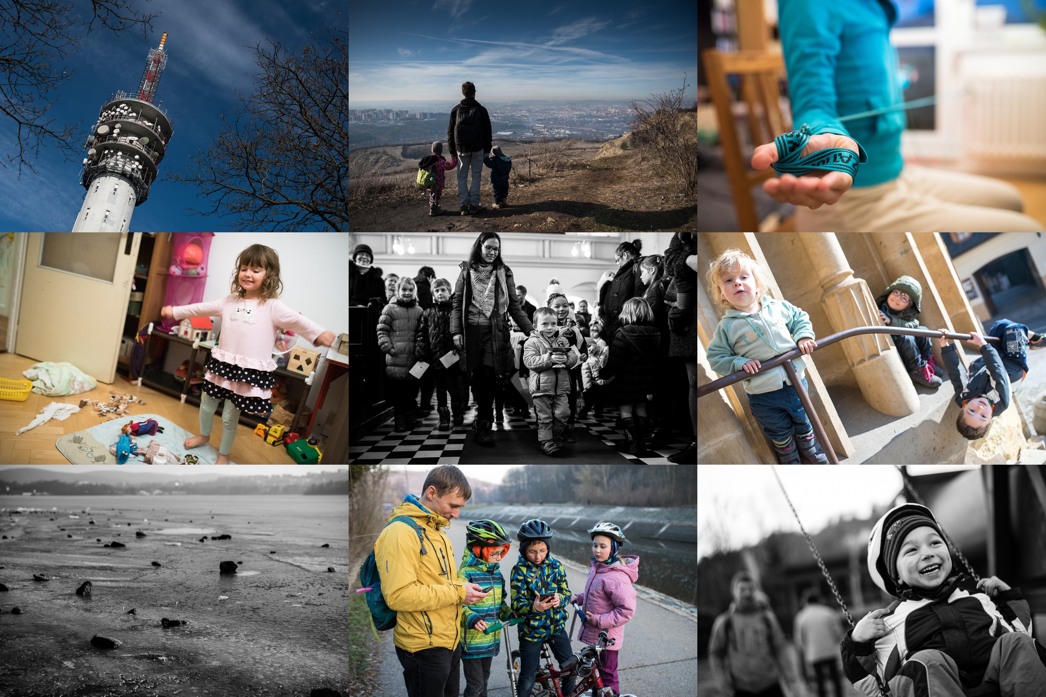 Koukáme na ten vysílač z Bystrce skoro každý den, ale naposledy jsme tu byli asi před deseti lety! / Brno nám leží u nohou / Gumy na SM systém už nám ve skříni skoro ztrouchnivěly, ale je na čase zase začít pracovat na pekáči buchet na léto :-) / Improvizované divadlo o Anně a Else. Věděli jste, že oponě ze čtvercové pleny, se říká "oplena"? :-) / Tak co, donesou to kluci vcelku? / Parkour před kostelem / Nová sněhová rolba na přehradě své využití letos opět nenašla, tak třeba příště... / Geokačeři na výletě / Taky se vám dospělákům při těchto amplitudách na houpačce dělá špatně?