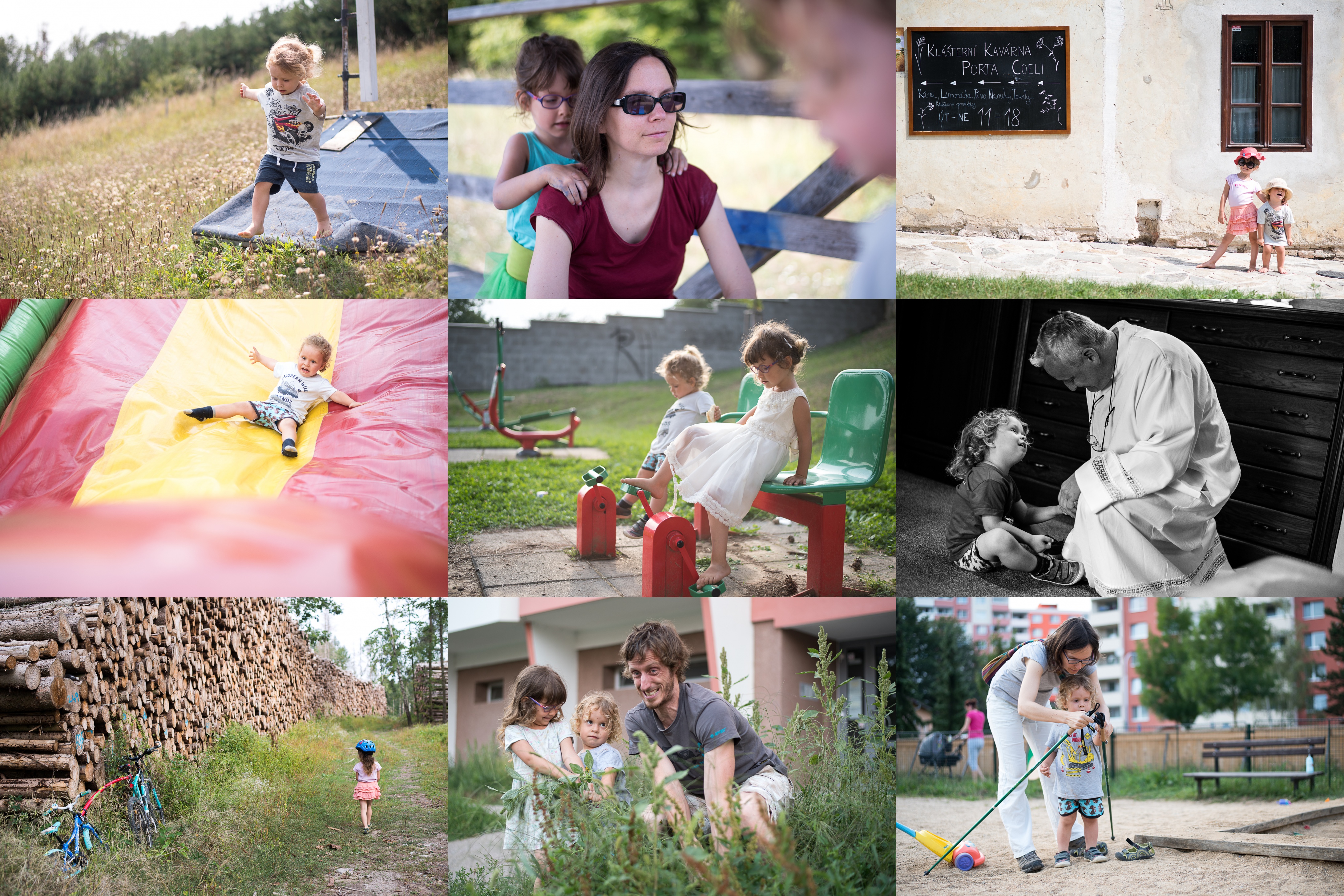 Připravit, ke startu, pozor... jedeme! / Vyšlápli jsme sjezdovku -malá masáž přijde vhod / Pózování v Porta Coeli. Klášterní kavárnu vřele doporučujeme. / Nenechte se zmást zděšením ve tváři - ve skutečnosti si to užíval / Na žebětínských hodech to zabalili nějak brzy, tak si děcka ještě šláply do pedálů / A Marceli, proč máš na sobě takovou noční košilku? / Hromada dřeva dlouhá jak Lovosice / Táhli, táhli, laskavec ale vytáhnout nemohli / Radovánku, nordic walking Ti ráda vysvělím, ale hůlky budeme asi muset o polovinu zkrátit