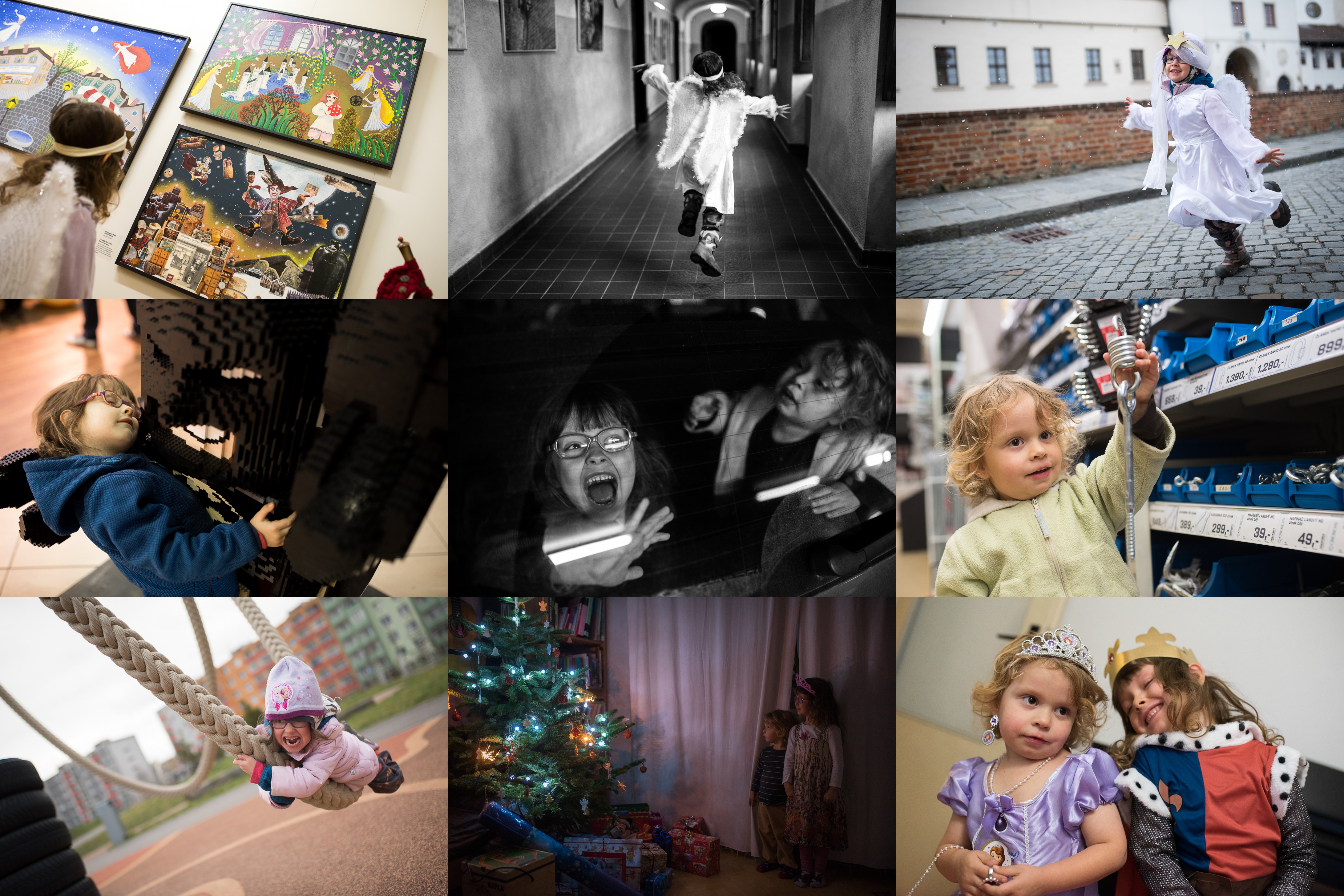 Na obrazech Karly Hanušové se snažíme luštit často dost šílené příběhy... / V dlouhých chodbách Špilberku se občas něco mihlo / Špilberk nám toho dne připadal jak ledová pevnost, dokonce i pár vloček spadlo / Která dívka by si nepřála usínat v náruči Batmana? / Klasická hra - Tati zavři nás v kufru auta a dělej, že nás neslyšíš, jak křičíme o pomoc / Člověk vyrazí pro pár šroubků a skončí u názorných ukázek fungování pružin, ok a karabin :-) / Říkalas, že mám točit co nejrychleji, ne? / Druhé vánoce / Radovánek sice dostal kostým Artuše, ale kostým Sofie je se svými střevícemi, naušnicemi a amuletem přece jen trochu lákavější