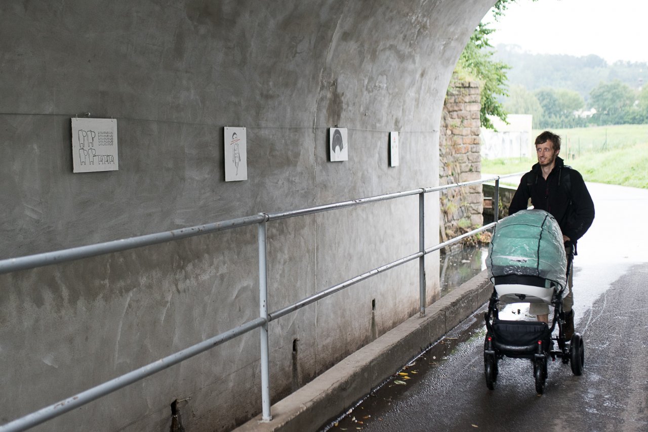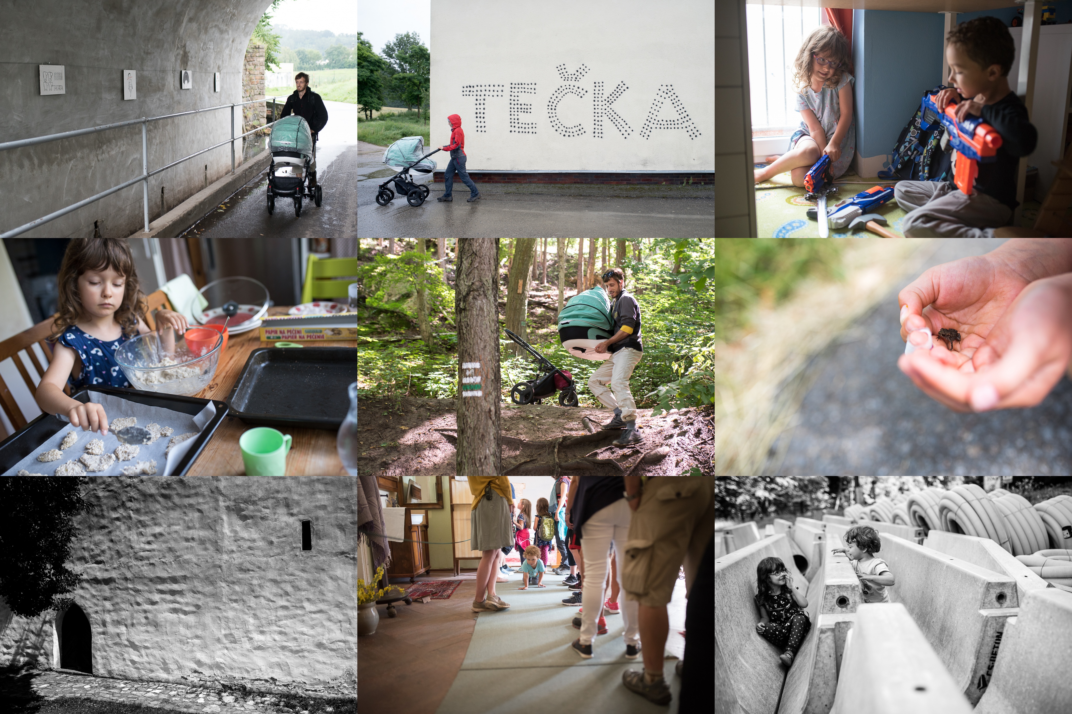Tato galerie pod mostem nás mile překvapila / A tato vytečkovaná tečka vlastně taky / Vítek ohromuje Verunku svou sbírkou střelných zbraní / Zdatná pekařka zeláků / Ještě že kočárek máme rozkládací (btw., Viko celý přenos přes potok Veverka prospal jako by nic) / Žabičky všude / Černá a bílá na kapličce u hradu Veveří / Prohlídka hradu z psí perspektivy / V podhradí vyrostlo dočasné dětské a zcela jistě nelegální dětské hřiště
