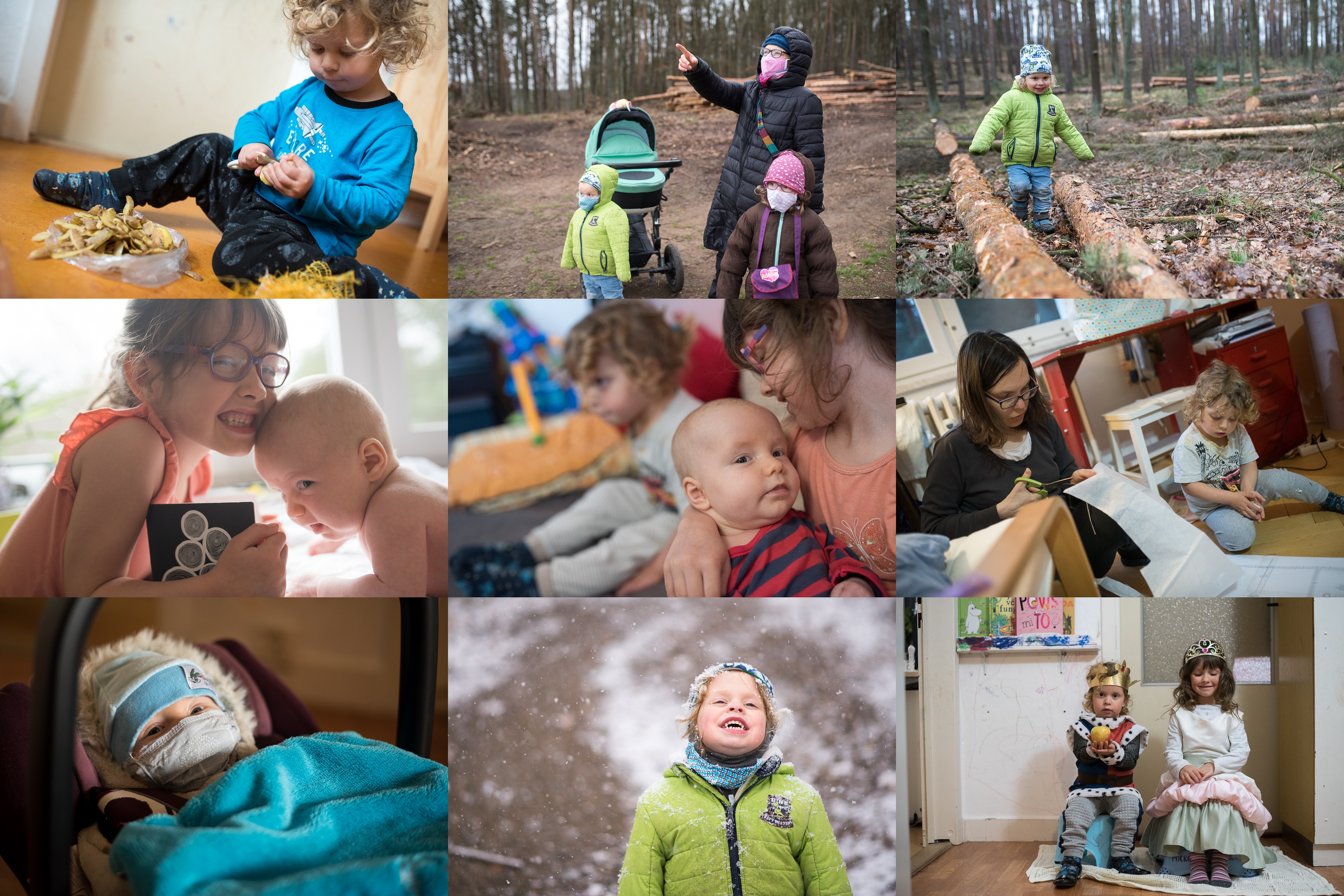 Radovánek se nenechá ujít žádnou příležitost k tomu něco ostrouhat / Vyhlídka na kraji našeho oblíbeného karanténního lesa / Přírodní překážková dráha / Občas je té lásky prostě na Vikyho až trochu moc... / ...ale většinou si to velmi užívá / Aktuální situace vyvolala v Lence chuť něco pořádného ušít / A můžeme jet! / Pohádková chvilka v lese / Kreativita našich dětí, co se týká vytváření různých kombinací kostýmů, je fascinující