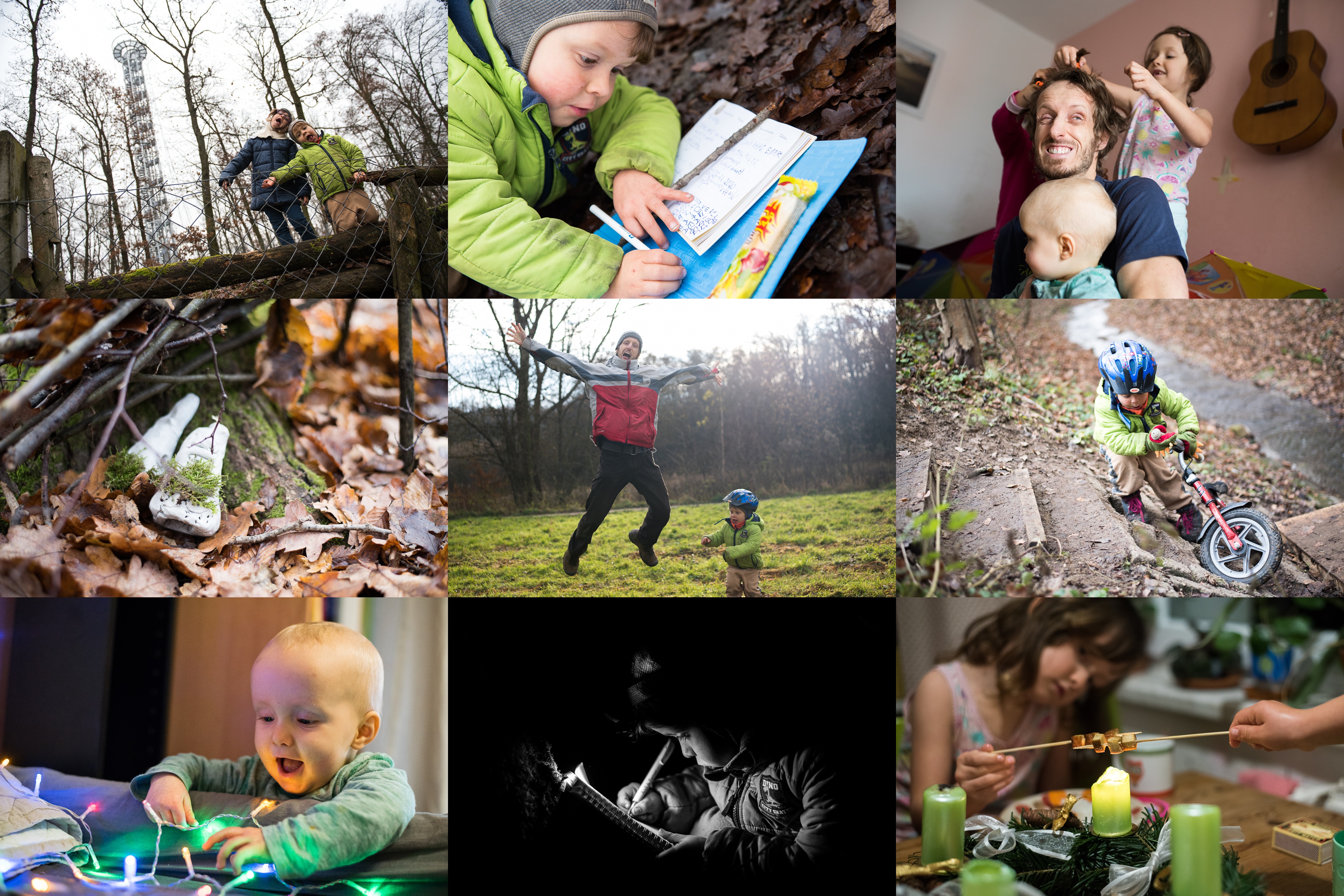 Zombie pod novou rozhlednou Holedná, kdy ji asi otevřou? / Radovánkův zápis do vrcholové knihy u občerstvovníku na Holedné dá asi potenciálním čtenářům docela zabrat :-) / Klid při sledování online bohoslužby byl vykoupen nemalou obětí / Konečně jsme odnesli do lesa hliněné skřítky, které jsme vyráběli v létě / Verunka se chopila foťáku a už ho nepustila, talent je tam nesporný! / Radovánek trval na tom, že svoje odrážedlo přenese přes potok sám... a fakt to dal / Vikísku, vyndej to z pusinky prosím. Vikísku, vyndej to z pusinky prosím. Vikísku, vyndej to z pusinky prosím. / Radovánek zapisuje kódy z nápovědy upíří kešky - koronaverze tradiční upíří stezky v našem lese / Netradiční využití adventního věnce, to dospělák prostě nevymyslí :-)