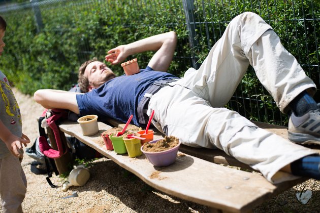 Ráďo, přenes batoh tamhle do stínu a dáme si svačinu
