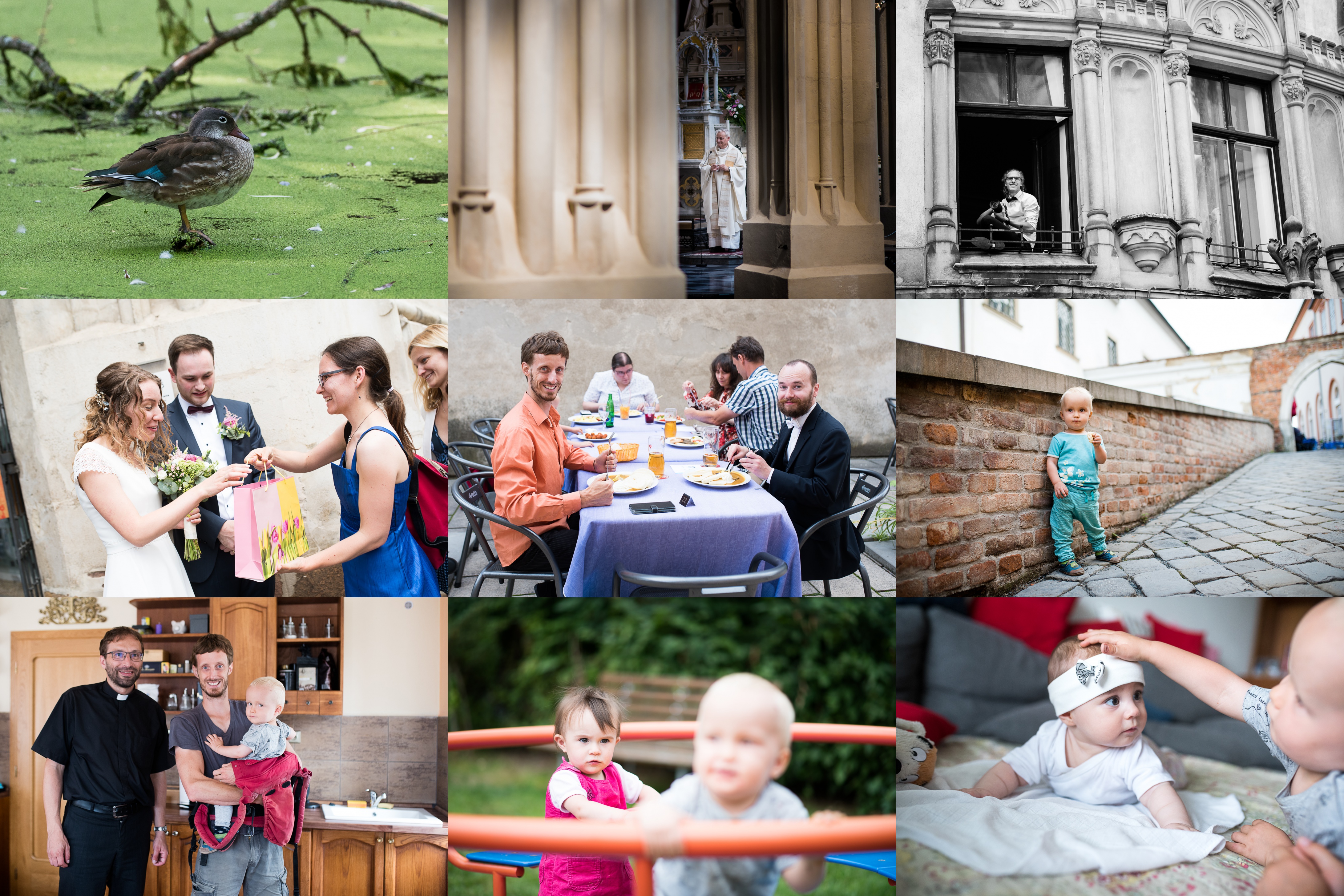 Kachnička mandarínská / Mezi sloupy / Pan fotograf byl velmi elegantní / Novomanželé / Svíčkovou jsme si dali u sester / Pán je model / Církevní turistika - za o. Václavem do Křižanova / Miriamka se na Vikiho tvářila trochu podezřivavě / Zato sestřenice Sofinka se nechala ochotně pohladit