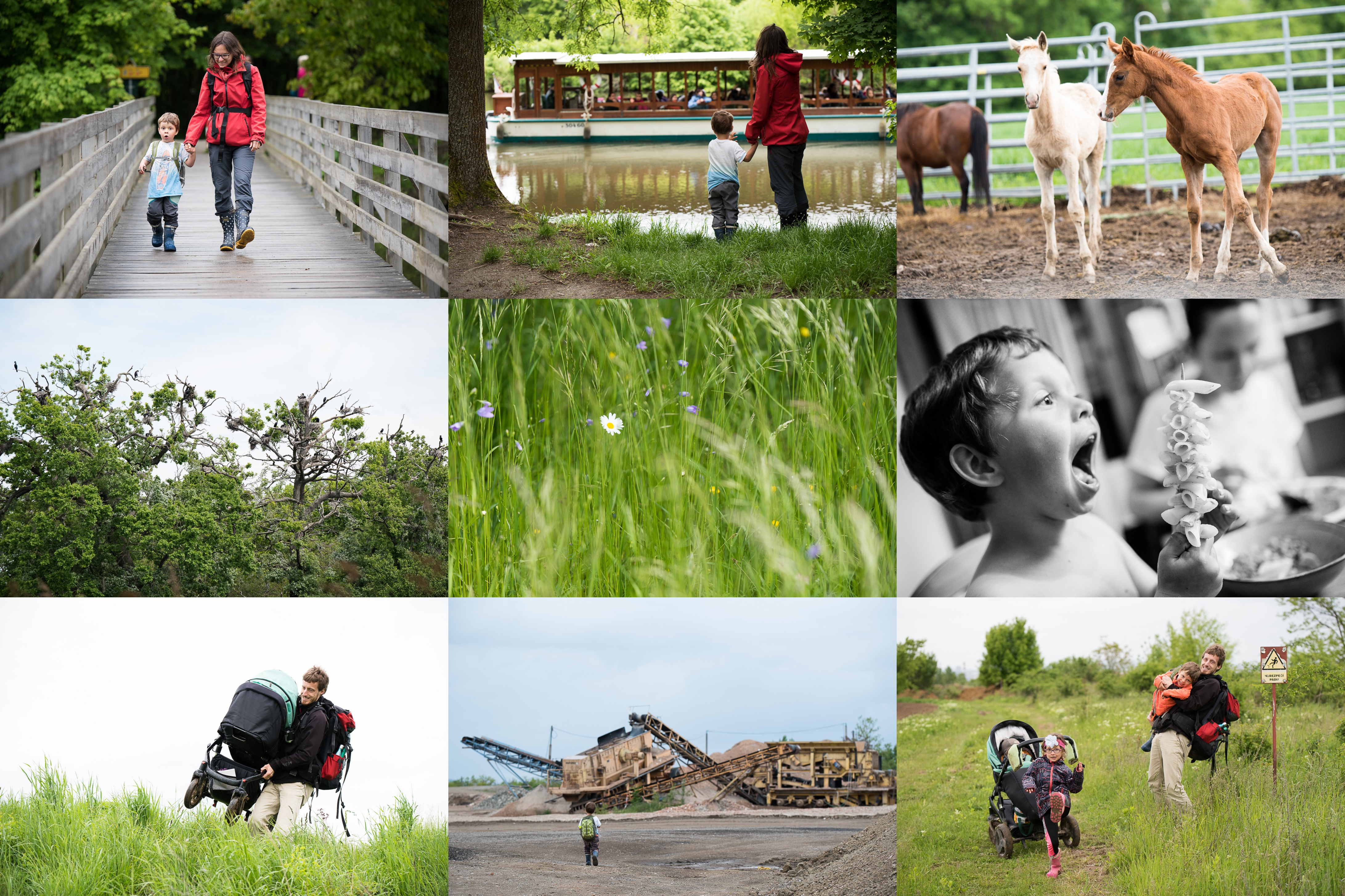 Blížíme se k Janohradu -ještě že ten most není padací / Verunka s ostatními Vrabčaty nám odplouvá do Lednice / My obdivujeme hříbátka v Ladné / Tak hnízdí kormoráni / A tak to kvete v lednickém parku / Je libo špízeček? / Na výlet do ptačí lokality na černovických terasách je třeba mít naposilováno / Procházeli jsme zákoutími vskutku industriálně-malebnými / A na okraji pískovny dávali pozor na nebezpečí pádu (to jsme ještě netušili, že nás čeká cesta zpět okrajem pole - ještě že nebylo čerstvě po dešti :)