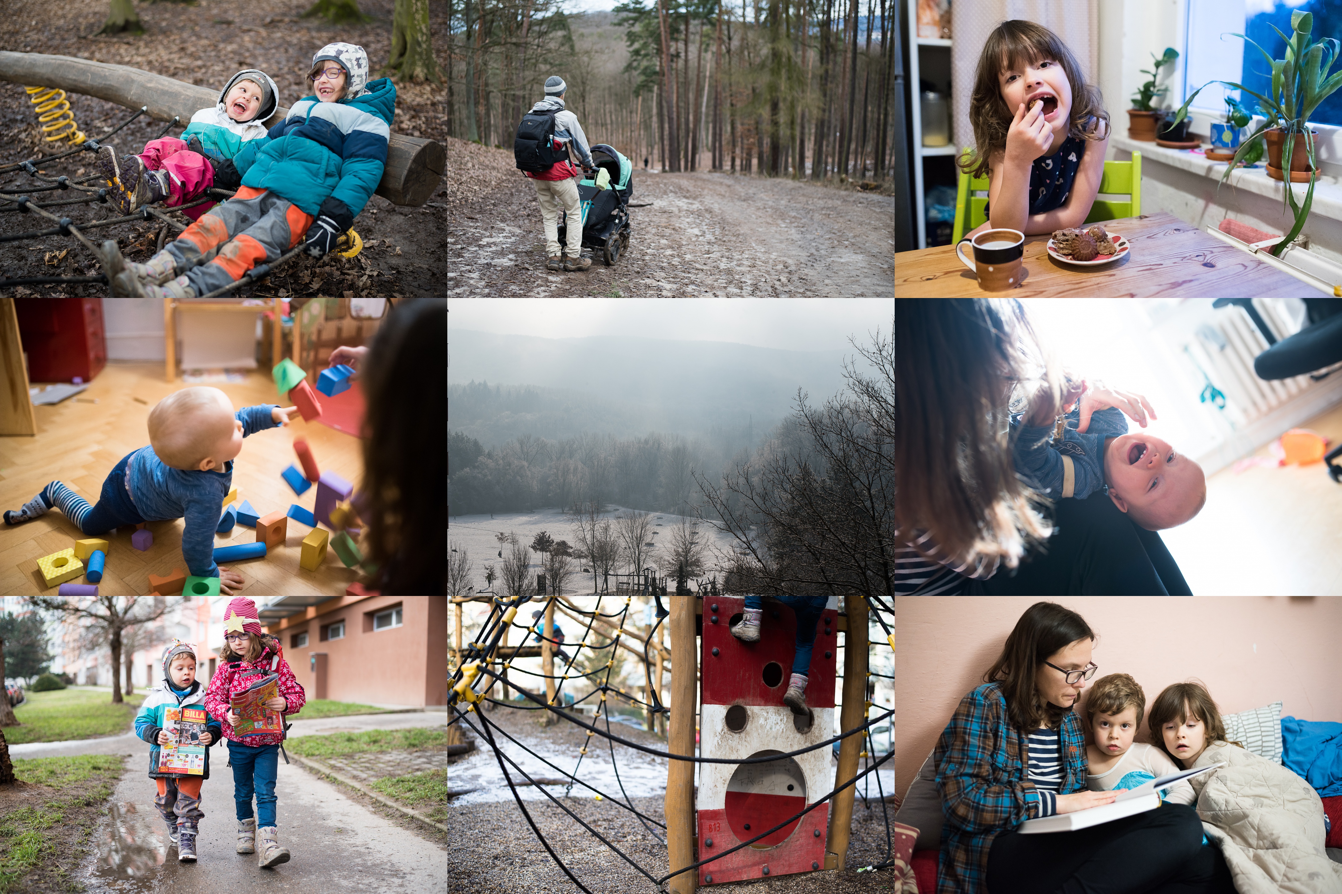 Houpat se je vždycky legrace, a když houpe děda z Prahy-Háje, tak obzvlášť / Kočárek zásadně neumýváme, a tak nám není líto vyrazit ani do pořádně blátivého terénu / Café laté s kouskem cukroví, velmi návyková poobědová záležitost / Viki, ještě nebourej, ještě nebourej... a už můžeš! / Takhle pěkně tam ráno bylo / Zkoumáme, jestli Vikiho mizerný noční spánek přinesl nějaké ovoce (a zase nic, ta dvojka vpravo nahoře se ne a ne proříznout) / Takže jaká trasa bude optimální? Nejdřív Penny, pak Lidl, Billa a nakonec Albert? / Hra od Azrika z Bystroušky nás provedla po staré Bystrci, i na hřiště nás vzala / Aha, takže tohle je menhir a tamhleto dolmen. (Kniha Umění vnímat architekturu pro děti a rodiče od Michaela Třeštíka)
