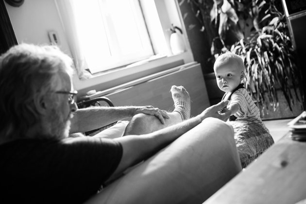 Na zdárný průběh houpání z povzdálí dohlíží strejda Lukáš
