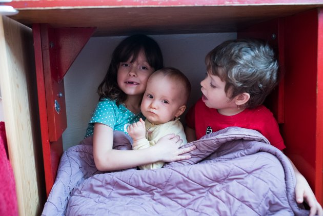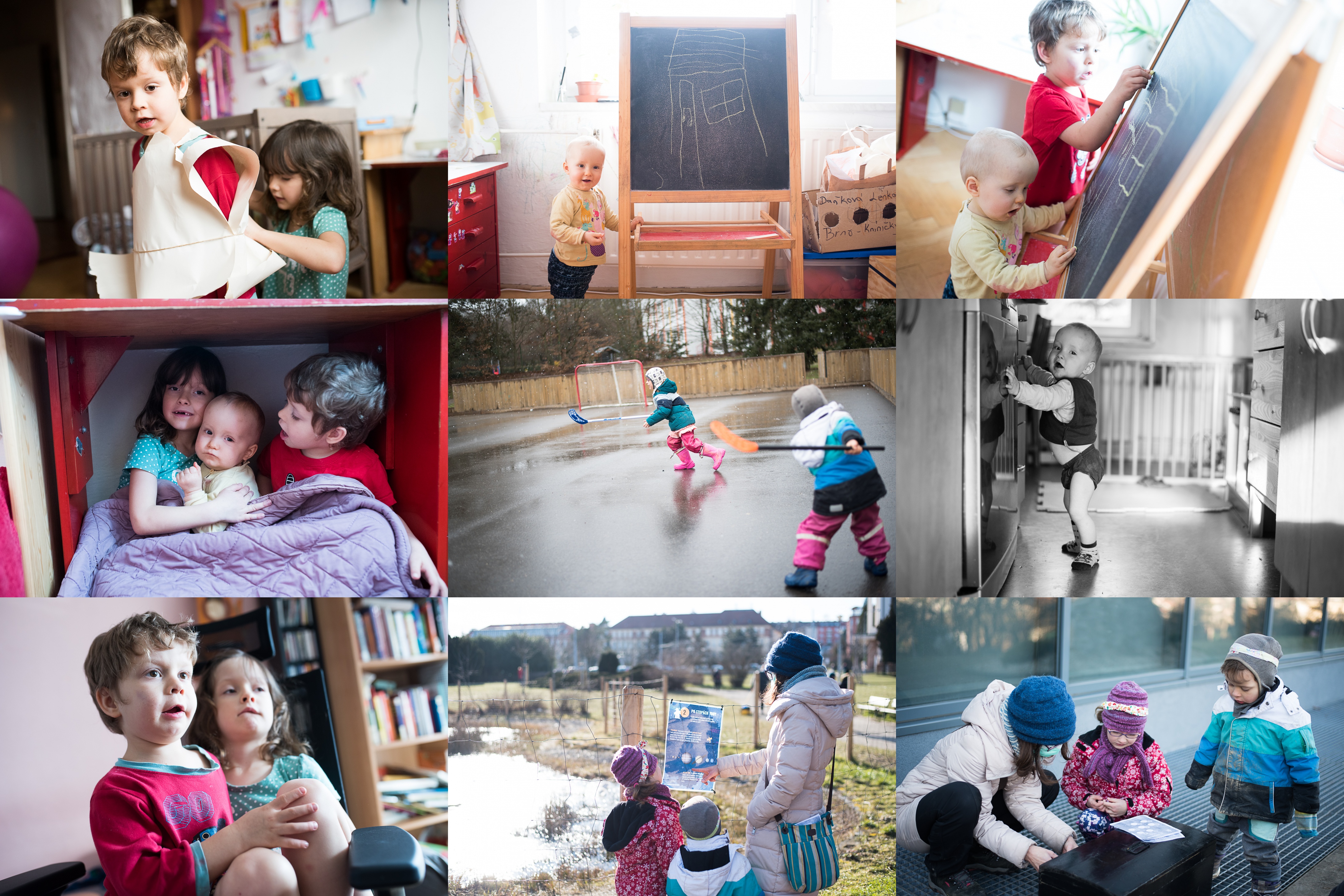 Král Šalomoun bude mít svůj plášť vyřešen vstkutku šalamounsky / Hele, co jsem nakrelil (ne domeček, ale tu křivku vlevo dole přece!) / A brzo nakreslím i takový dům jako brácha / Děti jsou nadšené, že mají Vikouška v bunkru pod stolem, Viki jejich nadšení zatím úplně nesdílí / Ségra, nenech se rozptylovat tím sněžením a hraj! / Přísunem kolem nábytku vpřed / Kázání z Vlčího doupěte jsou čím dál lepší! / Vydali jsme se po stopách Mistra Yody (nebyli jsme tedy zdaleka sami, tolik lidí už jsme dlouho pohromadě neviděli) / Otevírání zámečků na truhle s pokladem dalo trochu práce, ale Tom použil kombinaci síly a grifu a odměna byla naše