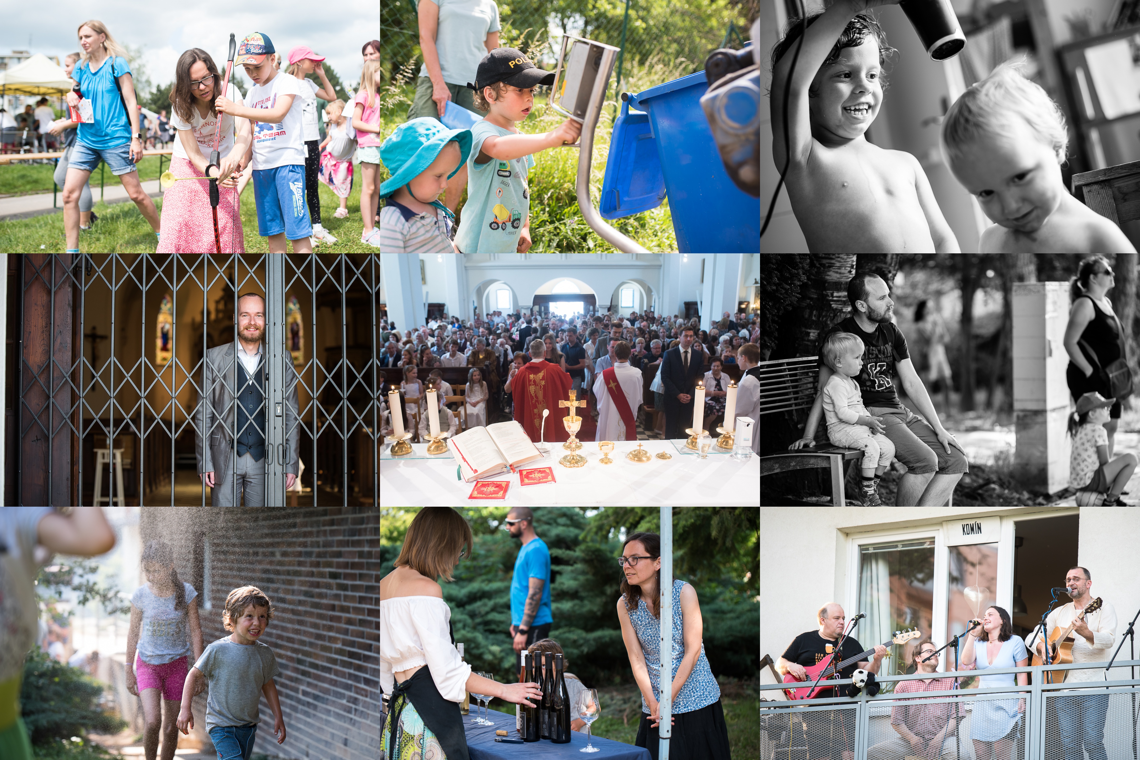 U našeho farního stánku na Dětském dnu byla fronta zejména díky lukostřelbě / Kluci si vyzkoušeli, jaké to je být popelářem / Vzájemná fánovačka / Zamřížovaný Dali / Kostel na první svaté přijímání praskal ve švech / Komínské balkony - akce již tradiční a námi oblíbená / Ani letos nechyběla mlžítka / A výborné víno od Tondy Bukovského / Ryby, co se daly po letech zas dohromady