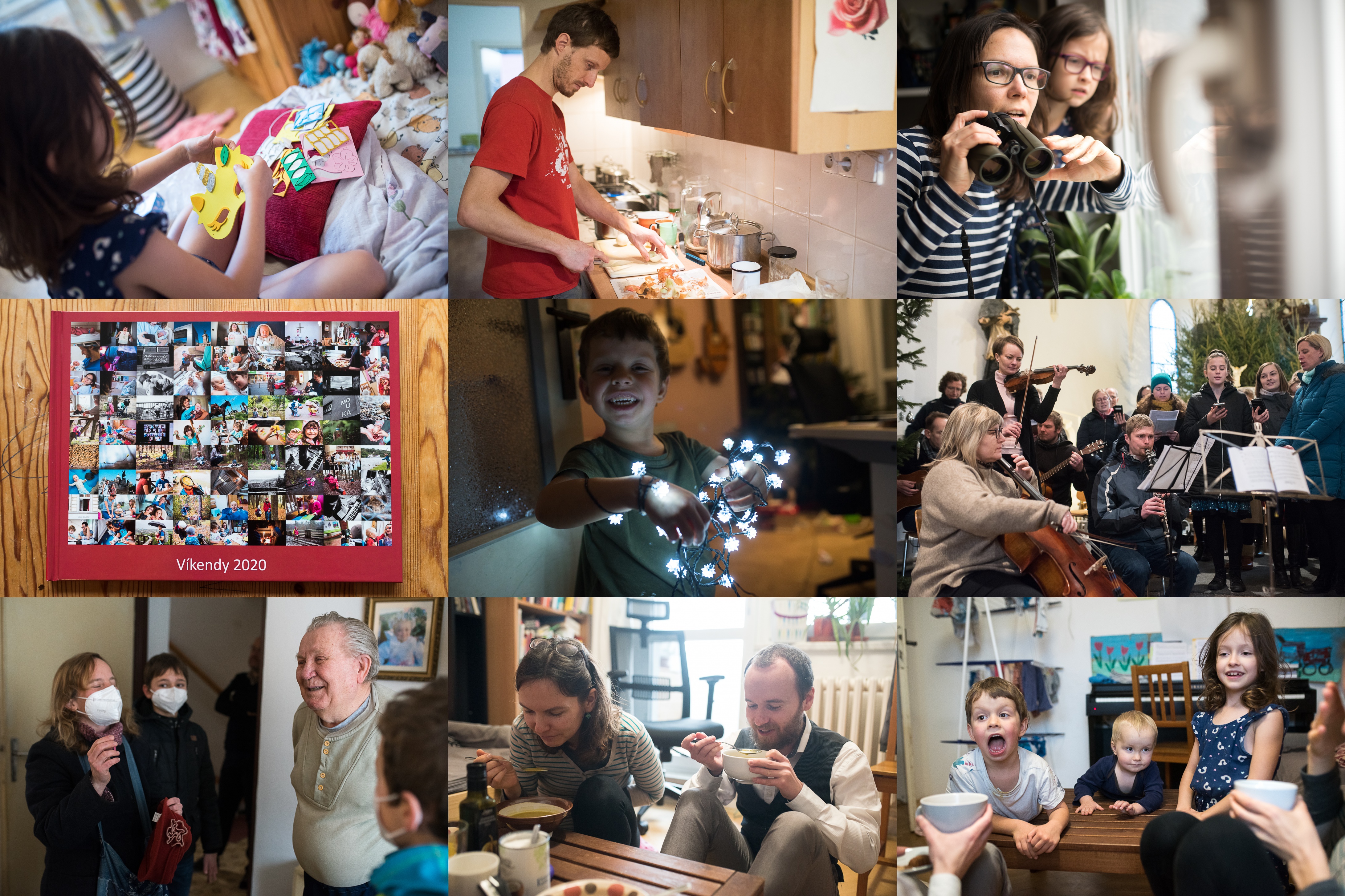 Vánoční dárky nás stále baví / Tom by prý bral nějaký kurz vaření... hmm... budeme o tom přemýšlet / Sčítáme ptáky na krmítků v rámci Ptačí hodinky / Ano, konečně jsme se rozhoupali k tomuto počinu, všechny víkendy za rok pěkně pohromadě / Radovánek ochotně převzal světýlkovou štafetu po vánočním stromečku / Malý Samuel si při křtinách užil krásný koncert / Zpovídáme tvůrce komínského pohyblivého betléma / Pozvali jsme si na oběd Daliho / Při dezertu se situace na stole lehce vymkla kontrole