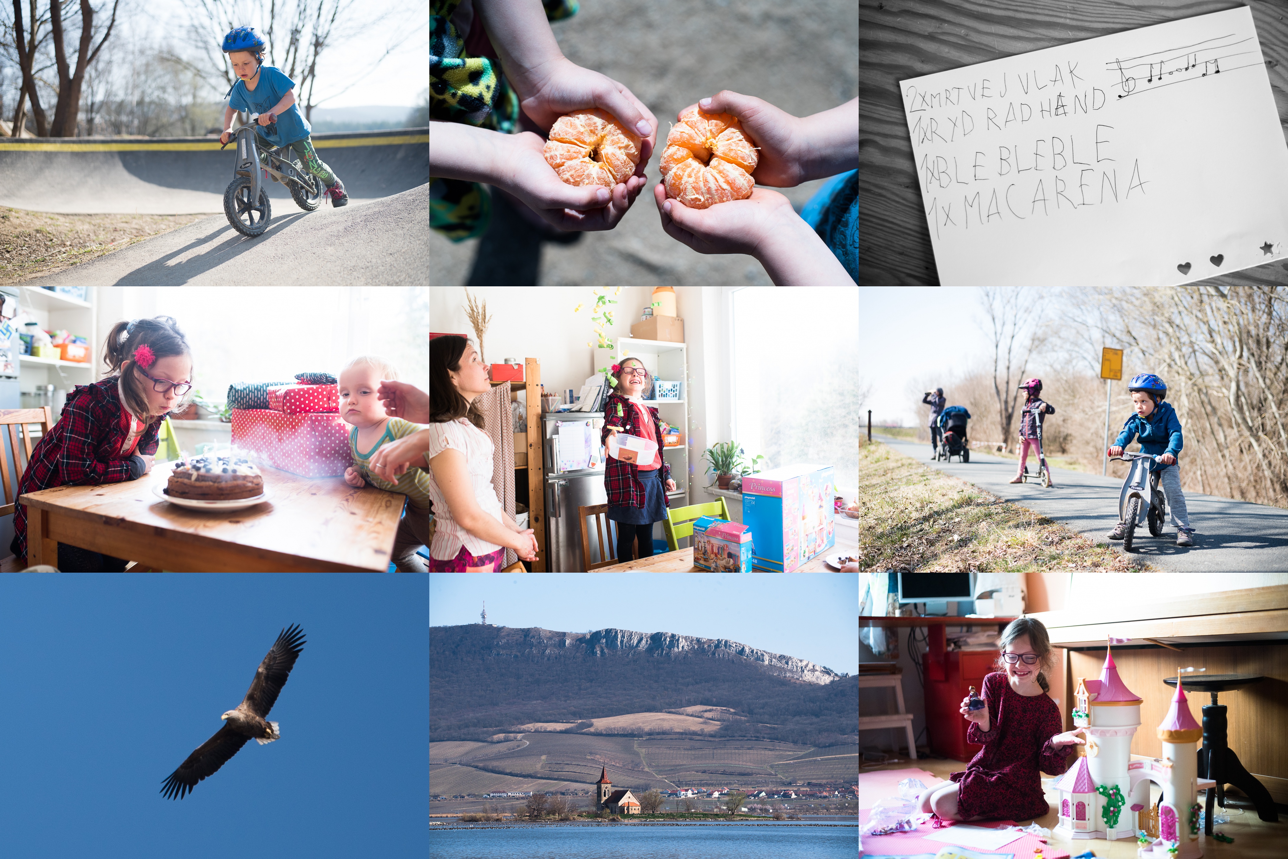 Ráďa zkušeně pumpuje na pump tracku / Svačina! / Playlist na Verunčinu narozeninovou diskotéku / Osm svíček jedním fukem! / Konfety nesmí chybět / Vyrazili jsme na cyklostezku k novomlýnským nádržím / Zvrchu nás pozoroval orel mořský / Mušovský kostelíček / Verunka se zabydluje na zámku