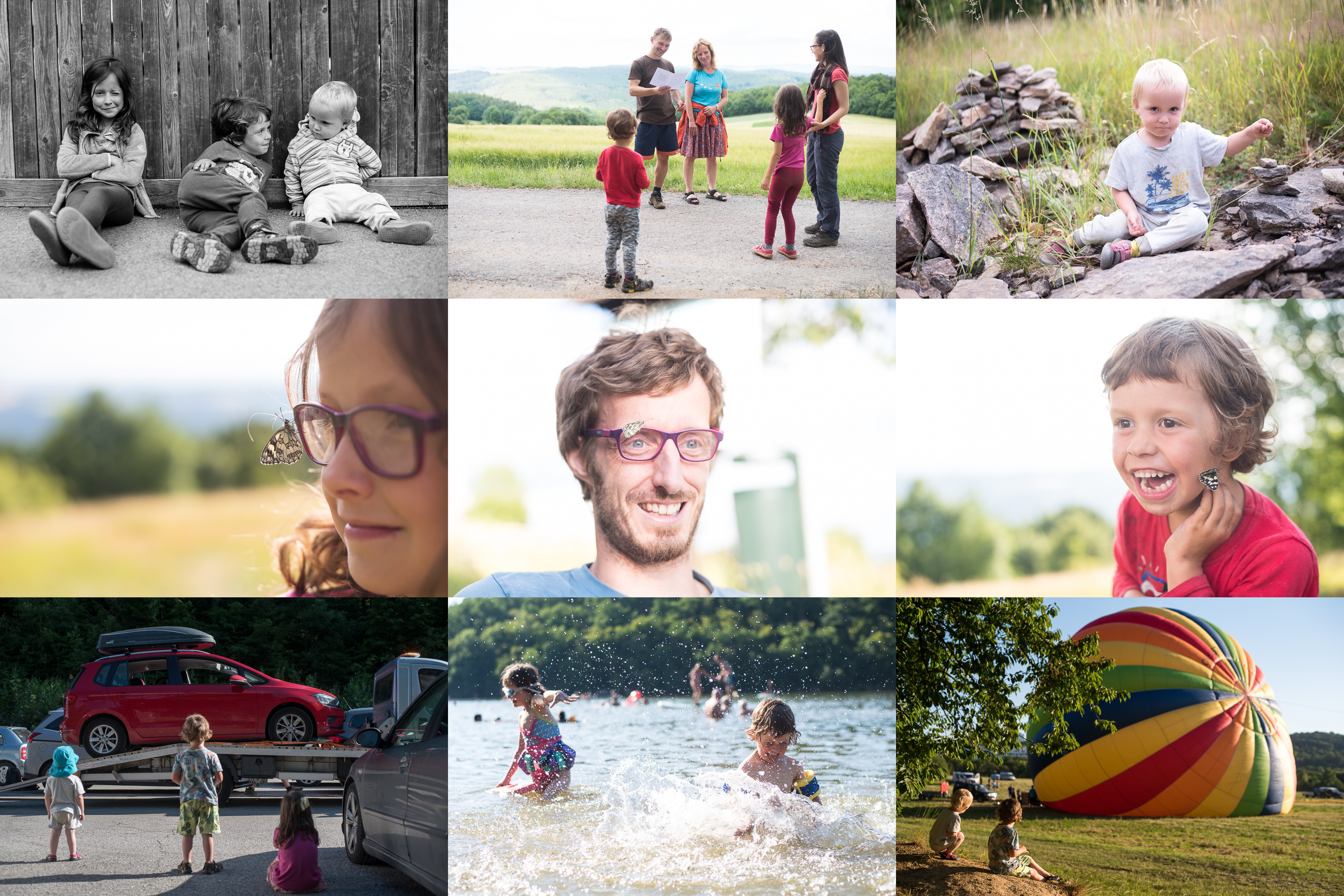 Pózování v ohradě / Předáváme dárek během téměř náhodného setkání na Chlumu / Na Chlumu se skvěle staví z kamenů a kamínků / Tento motýl se ukázal být velmi přítulným / Na Verunčiných brýlích byl ochoten se družit s kterýmkoli členem naší rodiny / A nakonec i bez brýlí / Takto vypadá auto, kterému náhle vypověděla své služby baterka / Vodní radovánky / A cestou domů krátká zastávka u startujících balonů