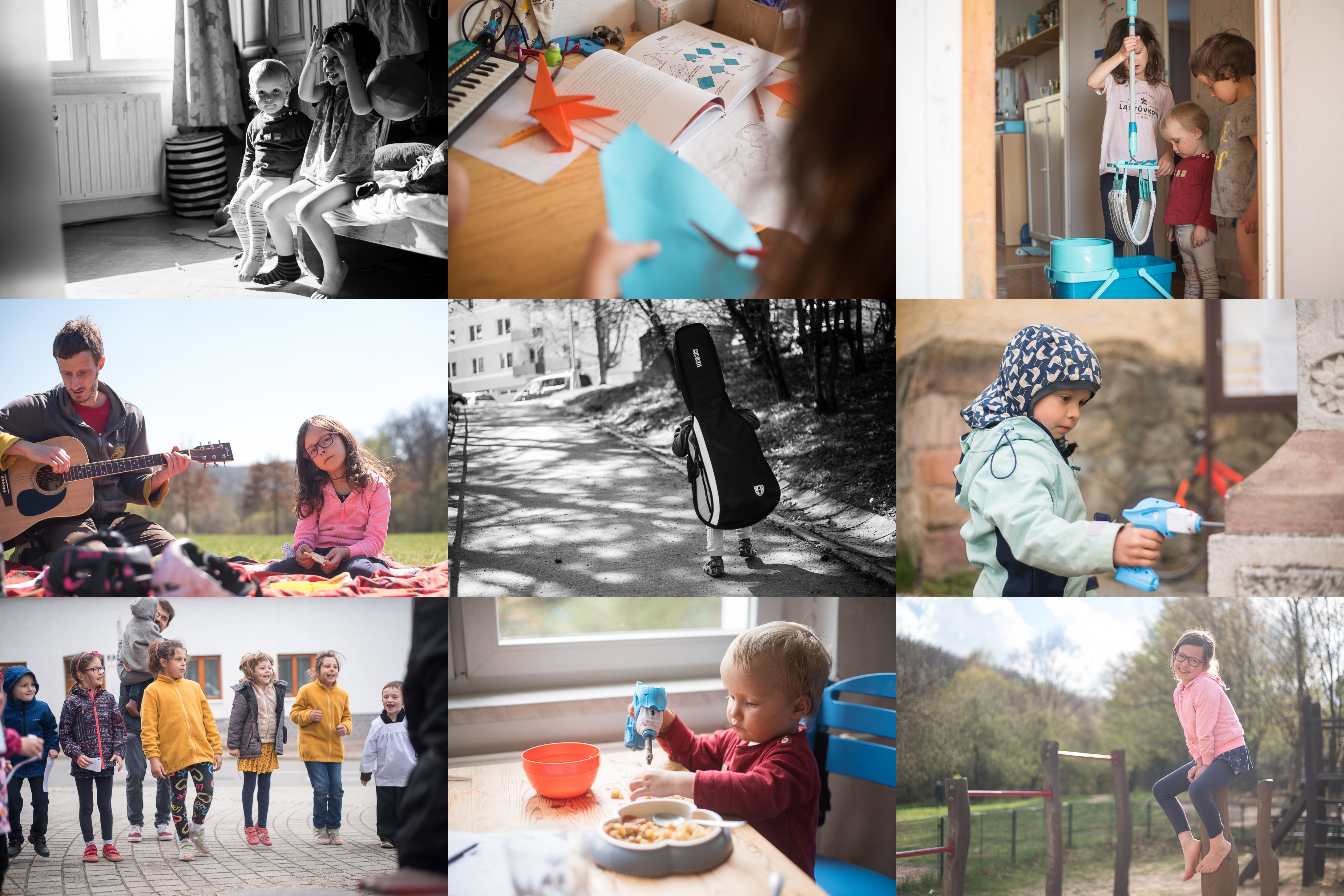 Občas mám sice ruce děravý, ale fakt mě to baví / Verunka se už vrhá do origami sama a neohroženě / Do úklidu sice ne tolik, ale vypadá zkušeně / Vzít kytaru na hřiště se ukazuje jako dobrá příležitost k nerušenému hraní / Navíc jí na hřišti narostly nožičky / I kamenným pomníkům je třeba jednou za čas dotáhnout šroubky / Při katechezi se tentokrát skákalo / Aku šroubovák lze využít i k porcování pokrmů / Bez bot! Letos poprvé