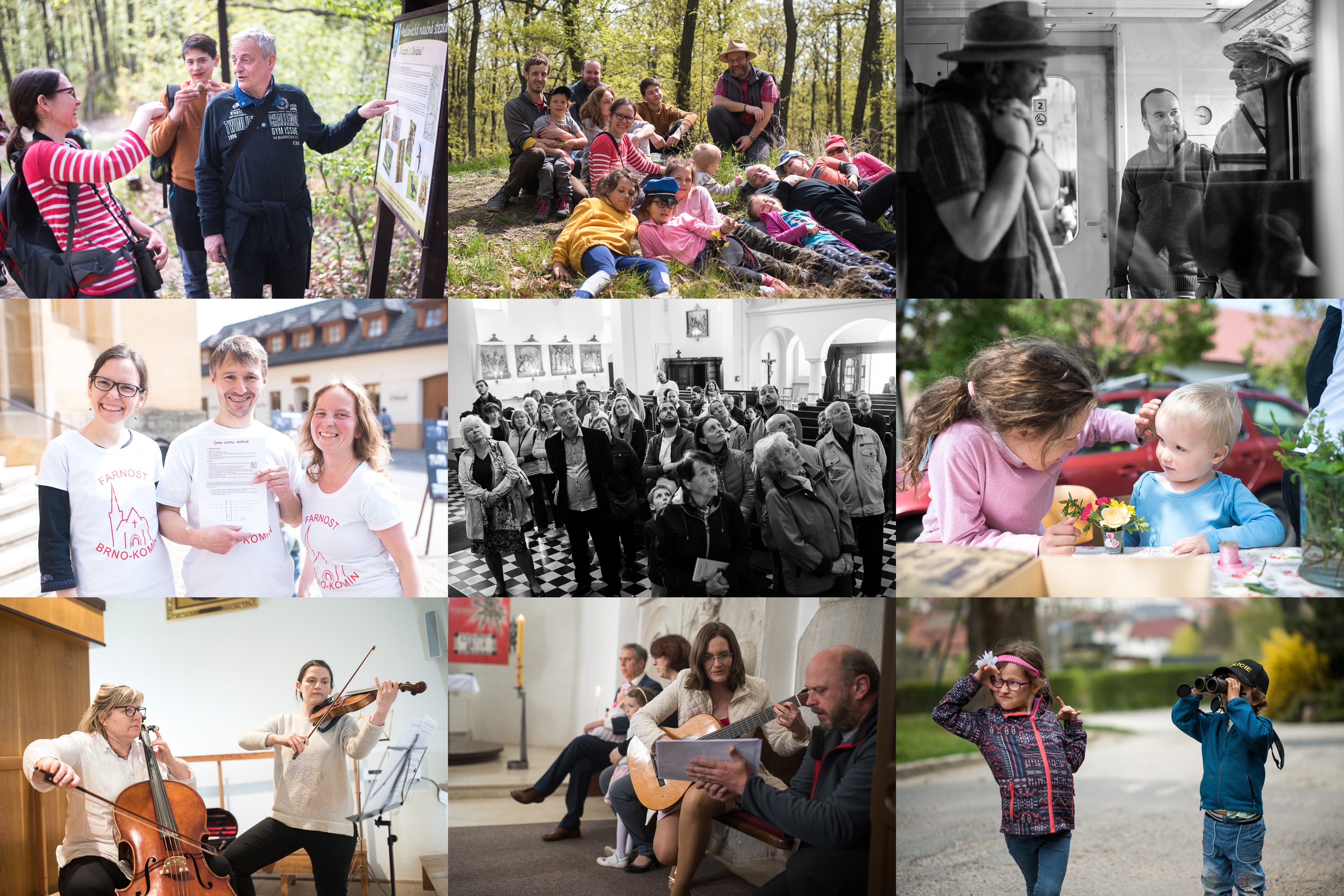 Marcel v sobě vysokoškolského pedagoga nezapře - jen co se najde příležitost, hned se pustí do zkoušení / Takhle náročná byla pouť ministrantů a přátel do Kuřimi / Ve vlaku někteří z nás nejeli už pěknou řádku let / Komínský farní dream team / Jako slunečnice otáčí hlavu za sluncem, tak účastníci komentované prohlíky za svatým Václavem / Květinové (s)tvoření / Housle a violoncello v duchovní hudbě / Zuzka na křtinách v Křižanově bravurně zvládla sehrát roli maminky i kytaristky / Pozorujeme křižanovské čápy