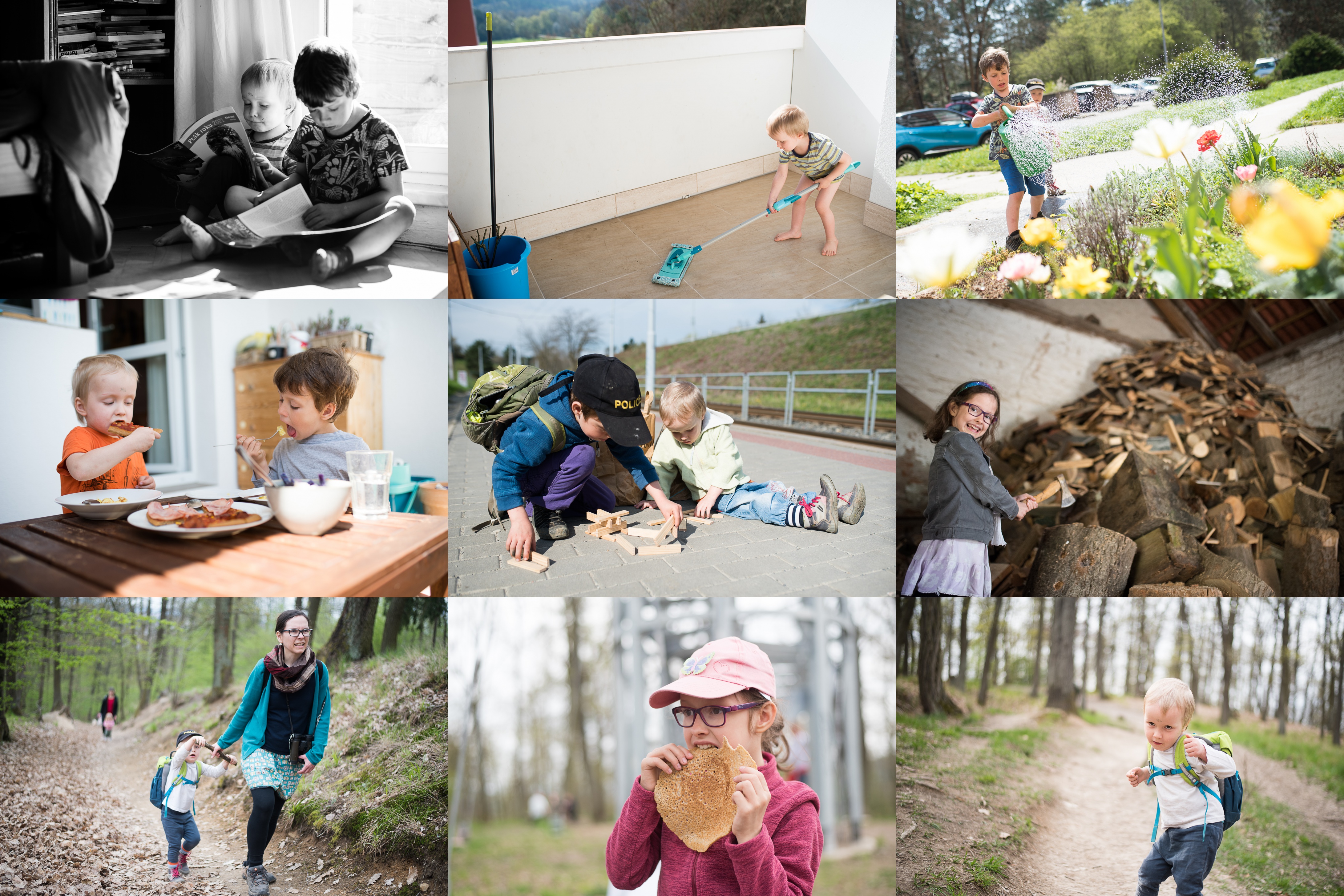 Při úklidu pod postelí zaujal kluky Ptačí svět / Balkon si po zimě zaslouží pořádnou lázeň / A zahrádka před domem zase sprchu / Na umytém balkoně zasloužený oběd / Kluci, co je to za nápad, stavět z Kaply na zastávce šaliny? / Veru, že Ty jsi s tou sekyrkou jen pózovala? / Stoupáme do kopce, někteří dokonce jedou na motorce! / Palačinka po náročném výstupu na rozhlednu fakt sedne / Raketa Super Heavy three two one go!