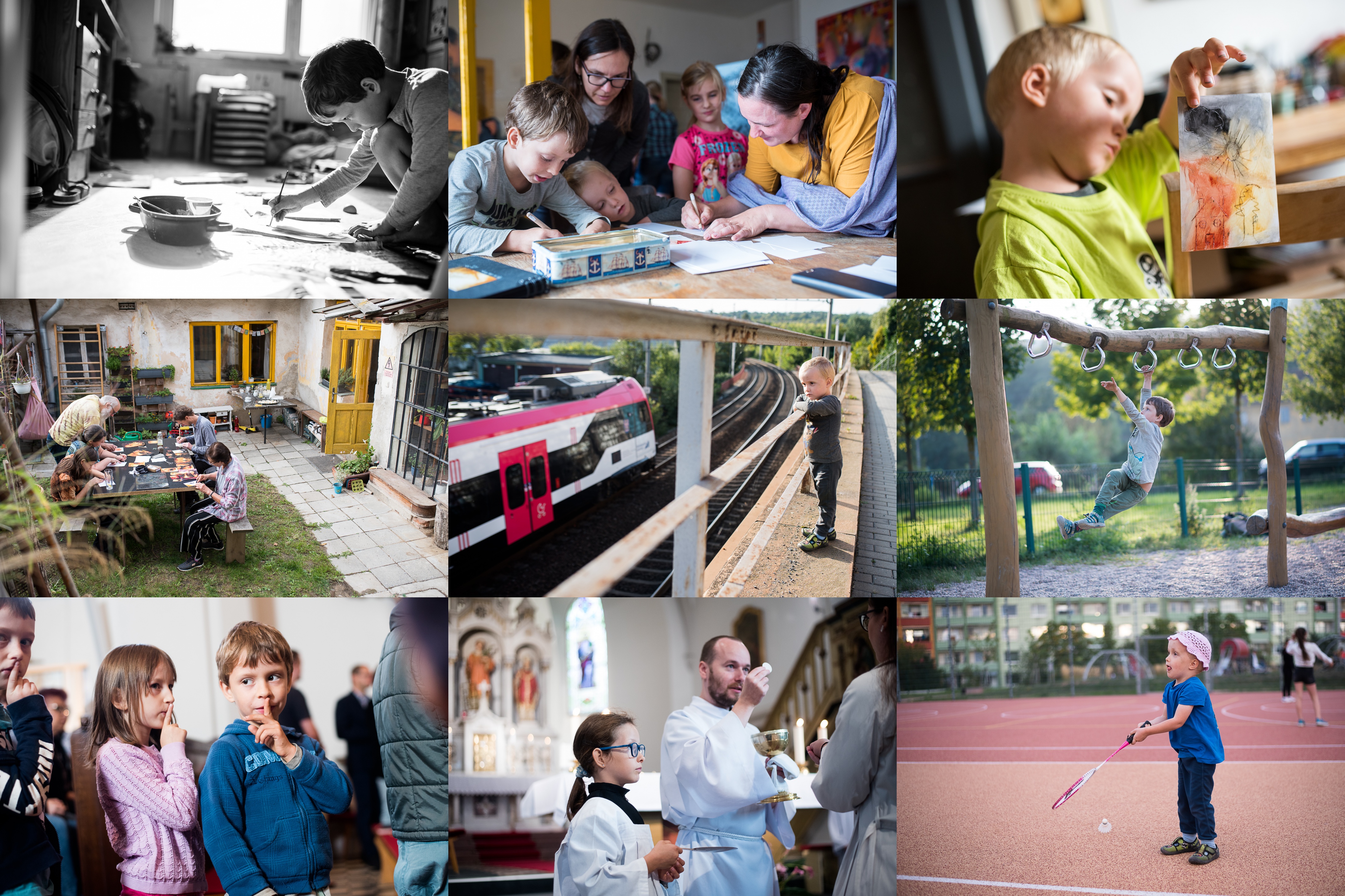 Celá podlaha zabraná - Ráďa maluje! / A tady ryjeme a malujeme pod Martininým vedením / Táta ryl, Viki koloroval / Atmosféra na dvorku byla tvůrčí / Trainspotting / Ráďa se naučil ručkovat / Psssst :) / Verunka bere svou ministranskou roli vážně / Každý začátek je těžký!