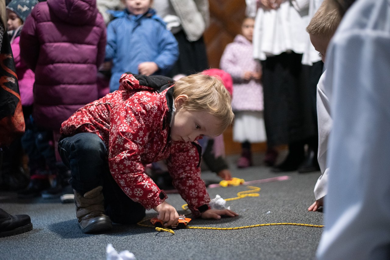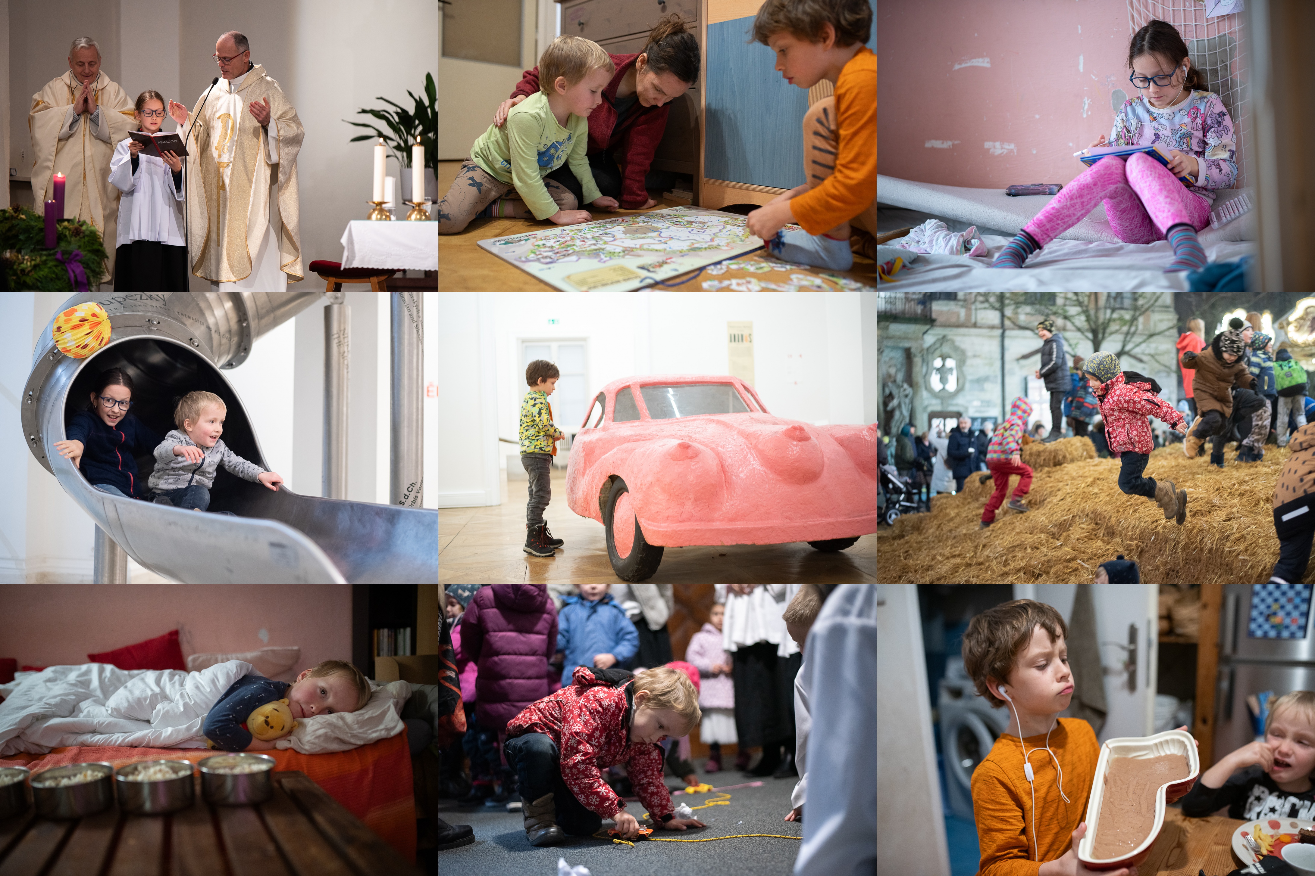 Verča dostala na konci adventní duchovní obnovy poklonu za to, s jakou noblesou se své ministrantské úlohy zhostila :-) / Když mapu ČR vytáhneme zpodkomody jen jednou za čas, děti docela baví / Každou volnou chvilku lze využít ke kreslení / Který exponát je v galerii moderního umění ten úplně nejlepší? No přece tobogán! / Takovéhle auto Ráďa ještě zaručeně nikdy neviděl / Skoky ze slámy do slámy se nikdy neomrzí / Při sledování StarDance nám Viki trochu odpadl / Ale druhý den na katechezi už zase vesele drandil po závodní dráze / Beránka v adventu? Proč ne?