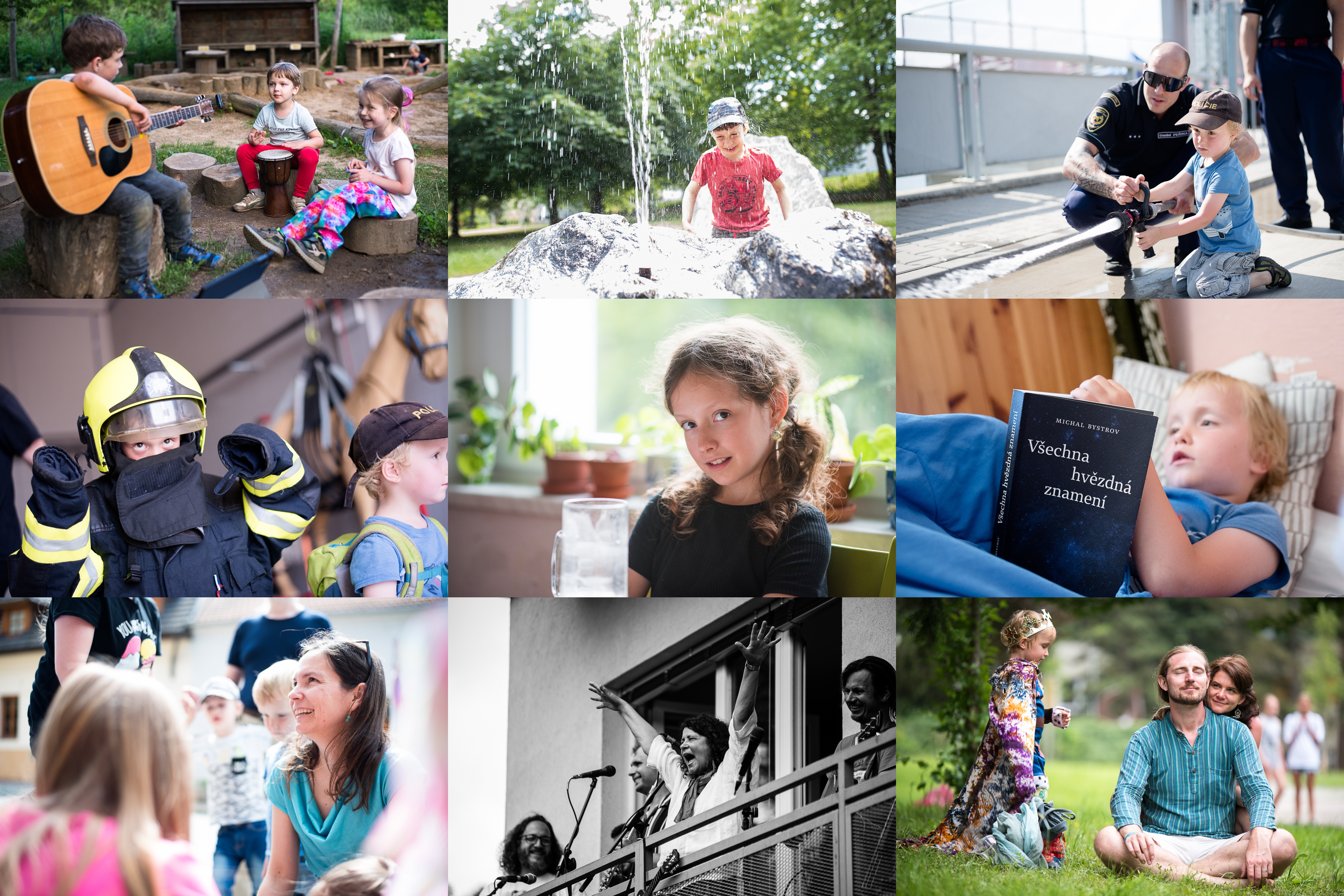 Pátek večer- školkový táborák, Ráďa zjišťuje, že s kytarou na klíně je hnedle středem pozornosti / Ráďa zjišťuje, že nejen v Minecraftu, ale i v reálném světě občas zaprší / Příslušníci Policie ČR absolvovali výcvik v hašení / Až jednou dorostu do téhle uniformy, stanu se hasičem / Proč mě fotíš, dade? / Viki si už od ranných let pěstuje lásku k poezii / Průběh dětské katecheze mě tentokrát nějak rozesmál / Iva Bittová zavítala na jeden komínský balkon! / A pod balkon zavítali naši milí kamarádi a jeden pan král