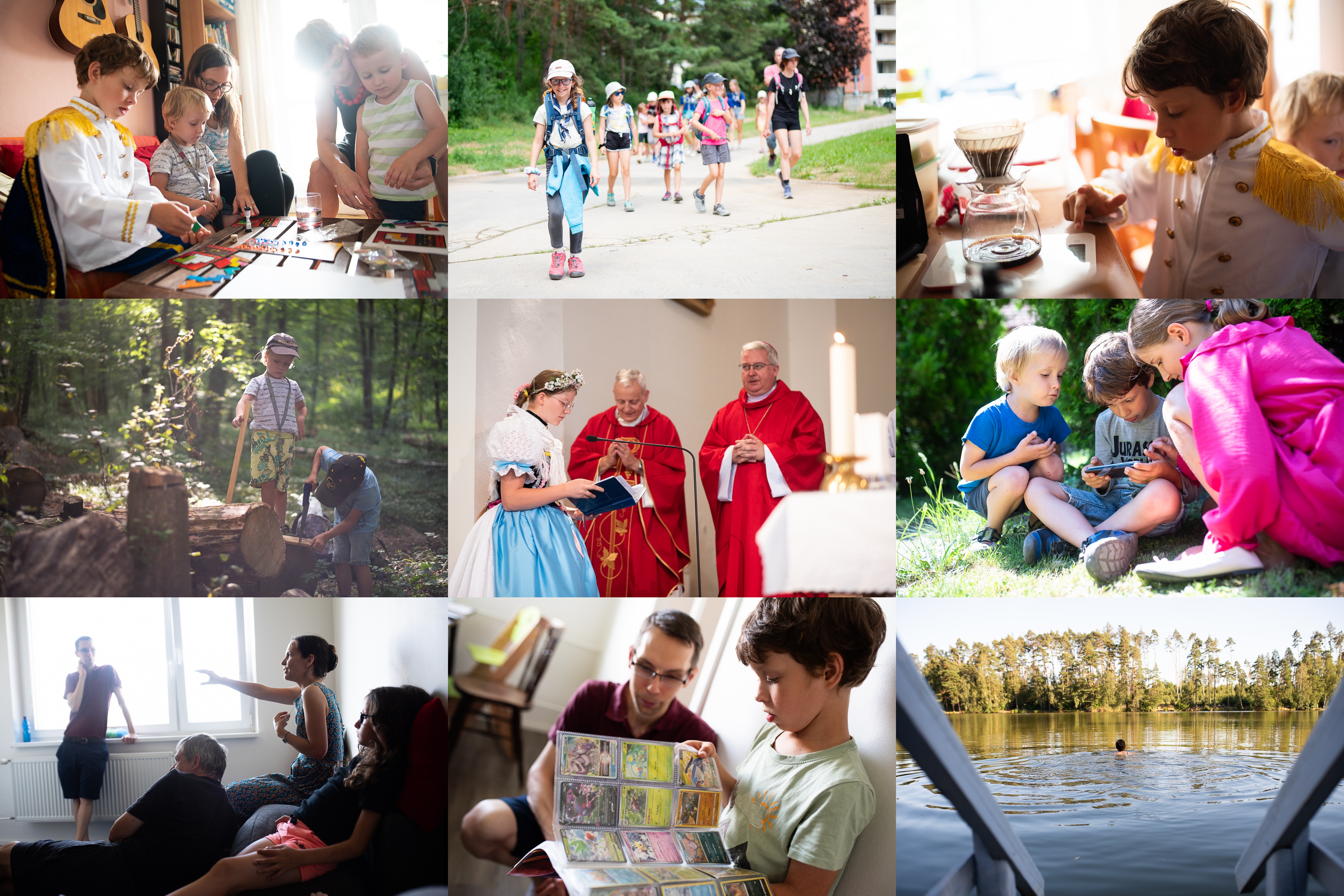 Máme návštěvu a zkoušíme s ní hrát Ubongo / Někdo nám přijel! / Odborník na překapávanou kávu ve svém livreji / Láska k práci se dřevem - pradědovy geny v akci / Slavit zároveň hody a zároveň výročí 700 let kostela, to je něco - i otec biskup Pavel se musel přijet podívat! / Děti na farních kavárnách už tradčně nacházíme schované pod keřem, s mobilem jednoho z rodičů v ruce / Střih, jsme v Praze - nejspíš, plná čerstvých zážitků, vyprávím o předjíždění zprava na D1 / Lukáš vzpomíná na svoje mladá pokemonská léta / Recept na parádní osvěžení: cestou po D1 zastavit na odpočívadle, auto tam nechat, ujít slabé dva kiláčky k rybníku a využít schůdky instalované místními chataři
