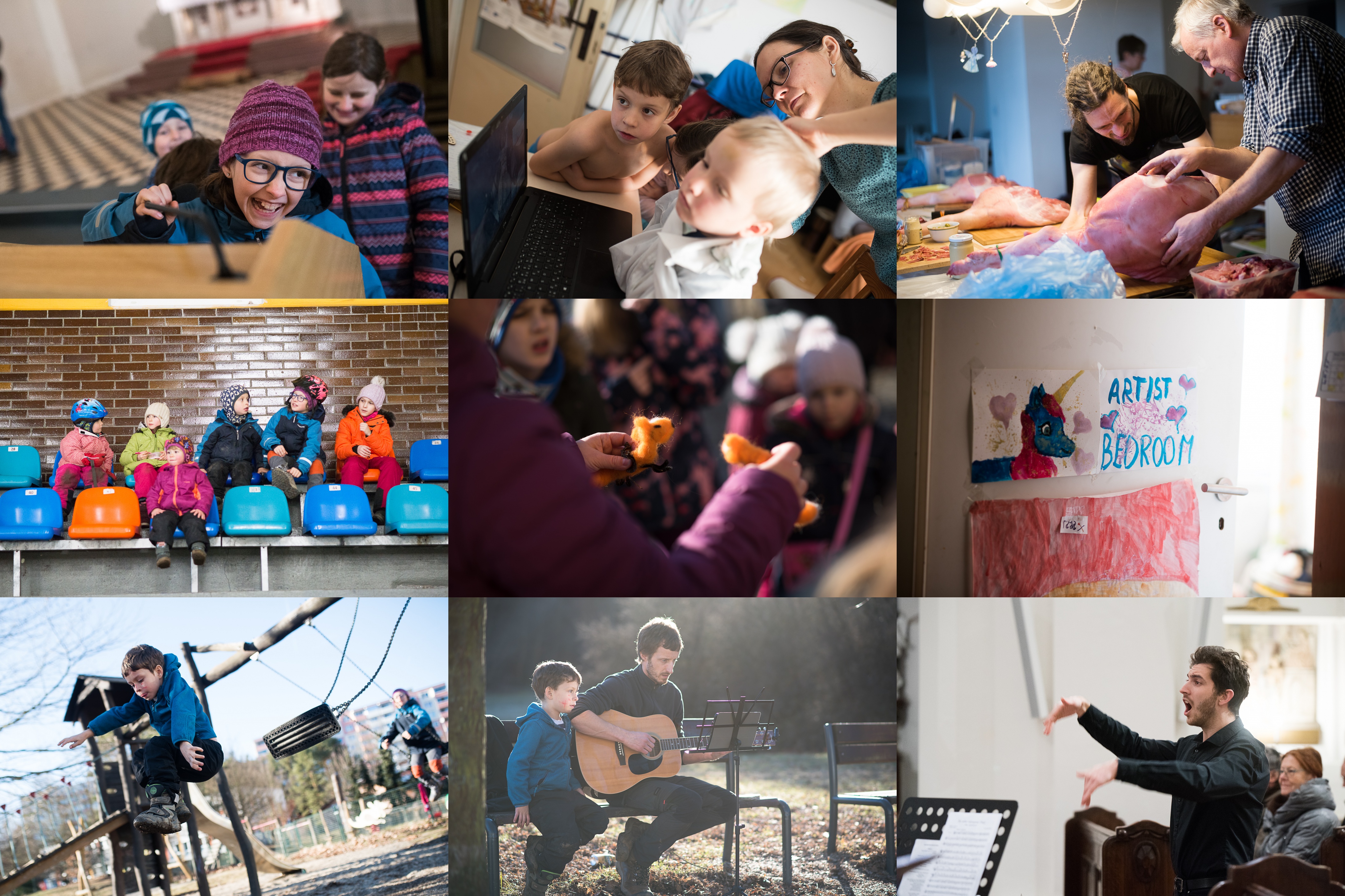 Pozor pozor hlášení, aneb mluvit do mikrofonu v prázdném kostele je největší zábava / Jeden pán čerstvě ostříhán, a druhý v plné parádě / Martin je největším odborníkem na zpracování prasečích kýt v celé farnosti / Na střídačce / Divadlo mívá při katechezi největší úspěch / Artist bedroom / Skok daleký z houpačky, Ráďova oblíbená disciplína / S dvojkombinací stojánek na noty plus tablet je Tom naprosto spokojený / Koncert Brněnského Akademického Sboru - úkolem fotografky je především zachytit pěknou momentku s panem dirigentem