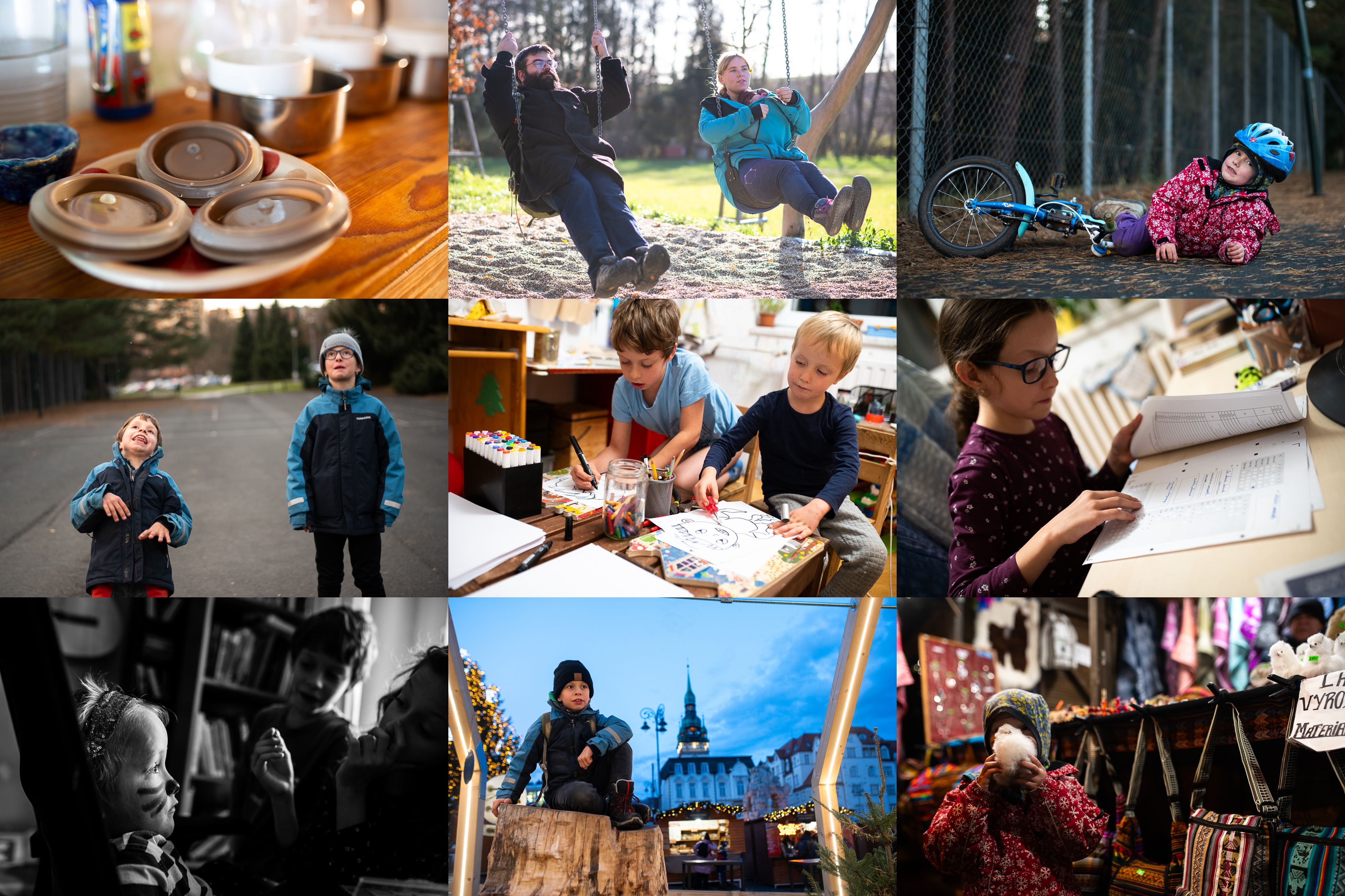 Pokus o úzkostlivou čistotu při domácí výrobě jogurtu / Rodinné focení s Tomem je jedna velká pohoda, objednejte se i vy! ;-) / Občasný karambol k životu začínajícího jezdce bez koleček tak nějak patří / Hod balonem na koš umí být pěkně napínavý / Viki se pokouší odpovědět na otázku, čím vším lze malovat / Zase nějaké přijímačky / Tak co, jak mu to sluší? / Vzácný moment pózování na adventních trzích / Vikimu se zalíbila tato nádherná bílá lamička (raději se neptejte, jak dlouho takto nádherně bílá vydržela)
