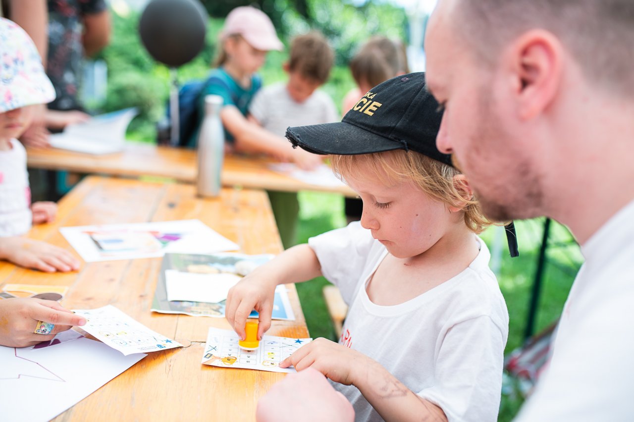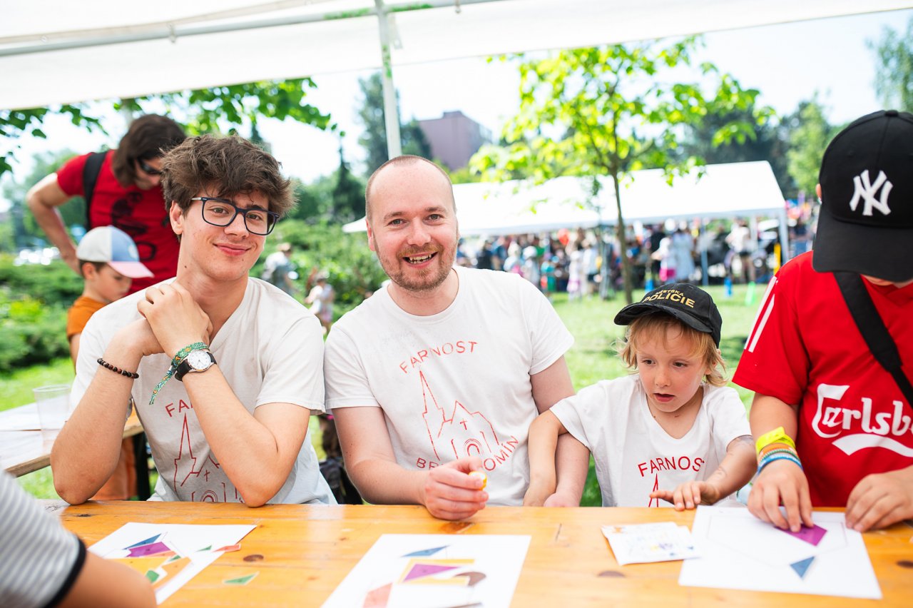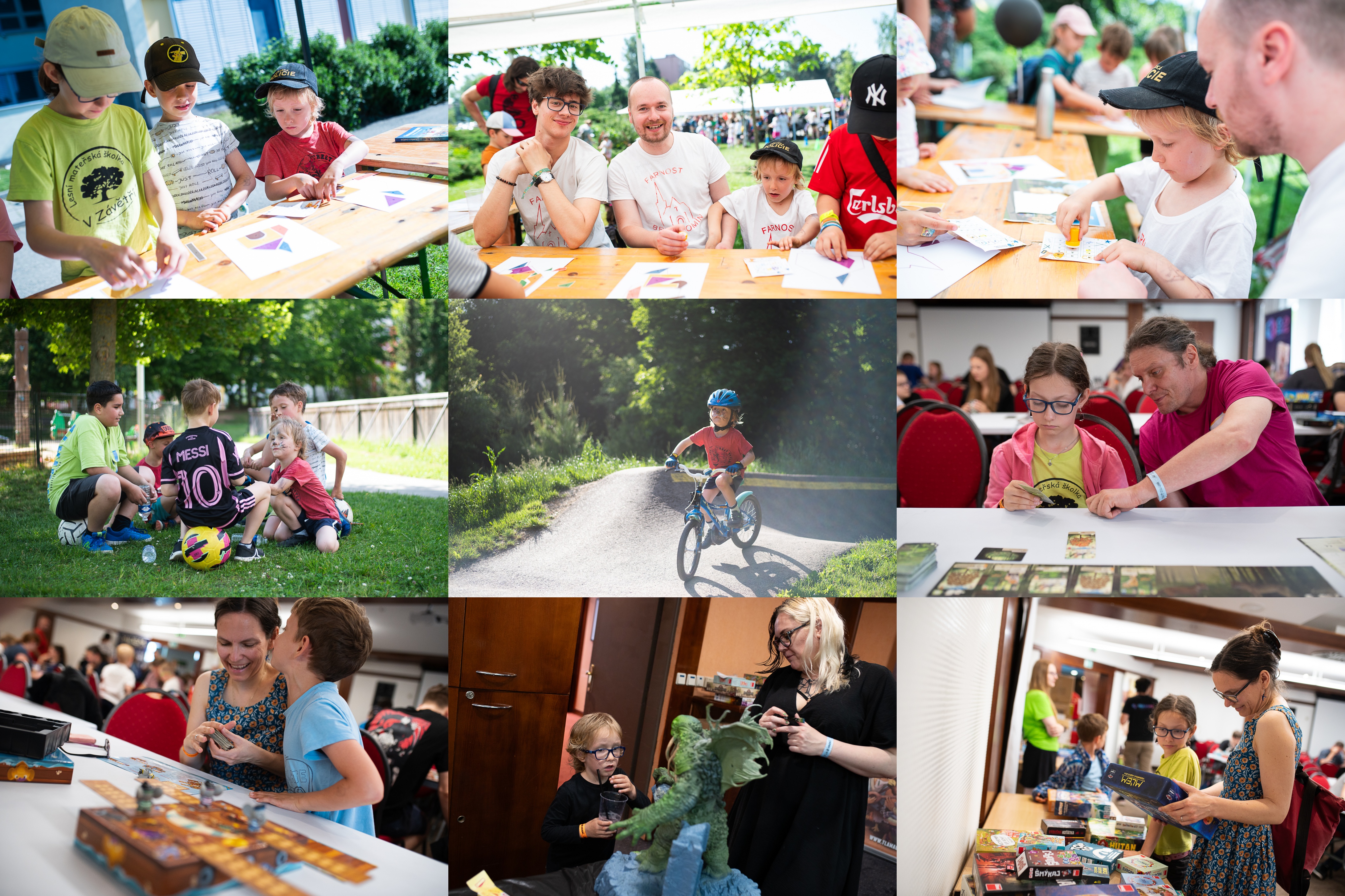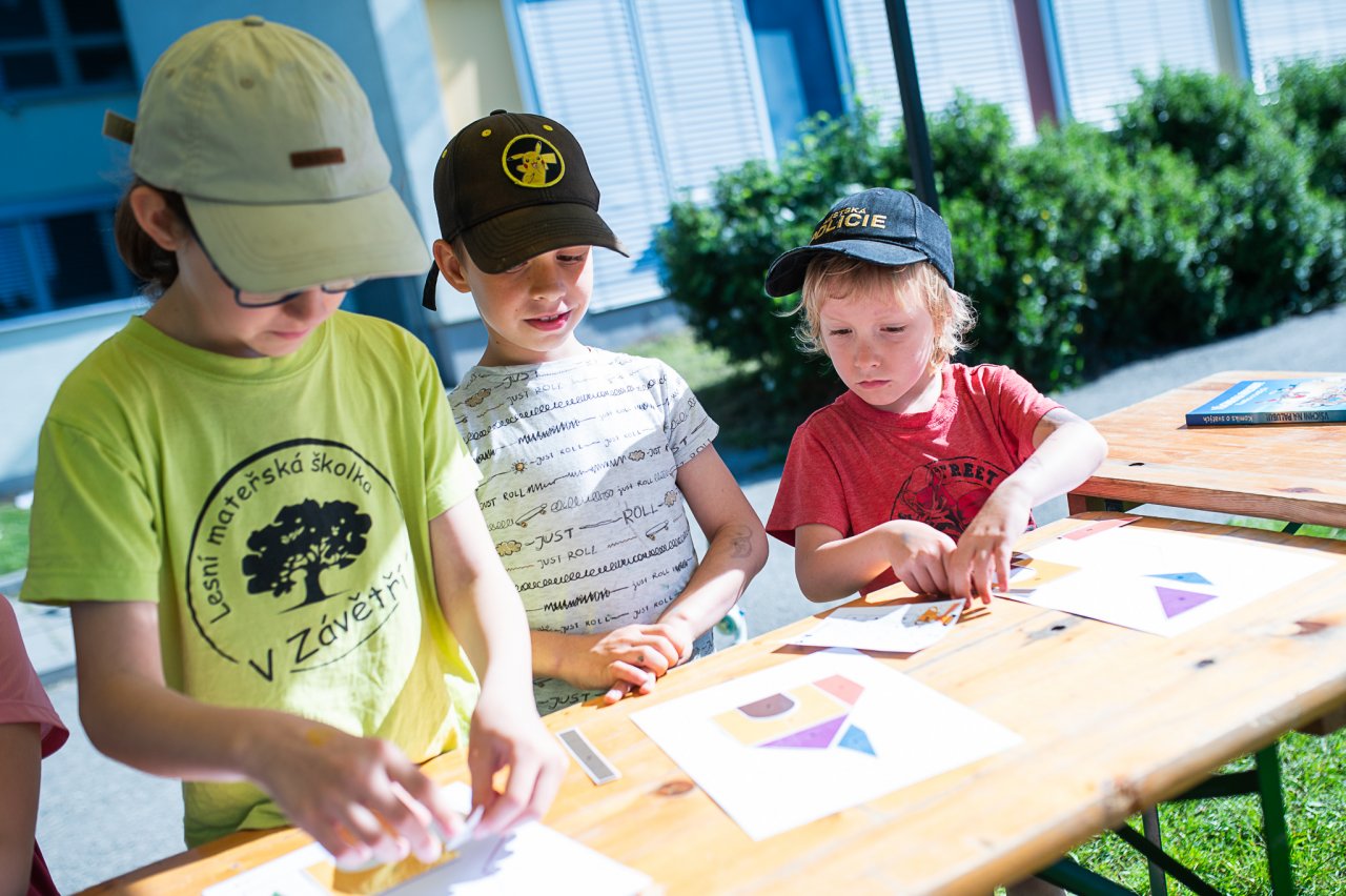 Stánek farnosti Brno-Komín je téměř ready na příval tangramuchtivých dětí / Farní dětskodenní dream team / Viki měl úlohu více než zodpovědnou / Na pauze u ohrady / Na pumptracku byla začátkem června k vidění myška s modrou přilbou, nevíte o ní něco? / Verunka se zatím tváří poněkud nedůvěřivě, ale trpělivý herman ji Smíšený les brzy naučil tak, že si hru fakt užila / Ráďa umí být opravdu zábavným společníkem / Tato "příšerka" Vikiho očividně zaujala / Ehm, z fotografie je jesně patrné, kdo je tady ve svém živlu :)