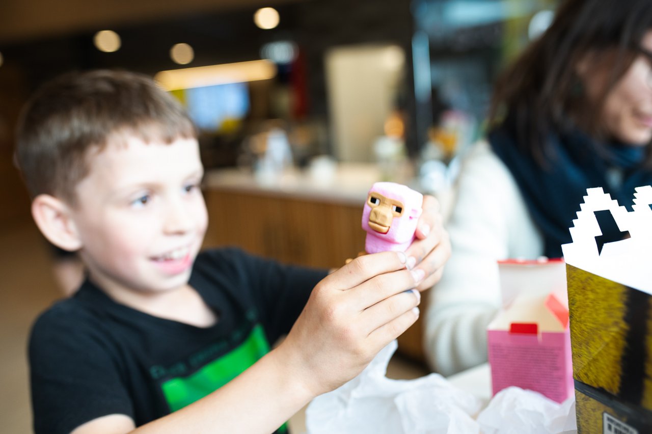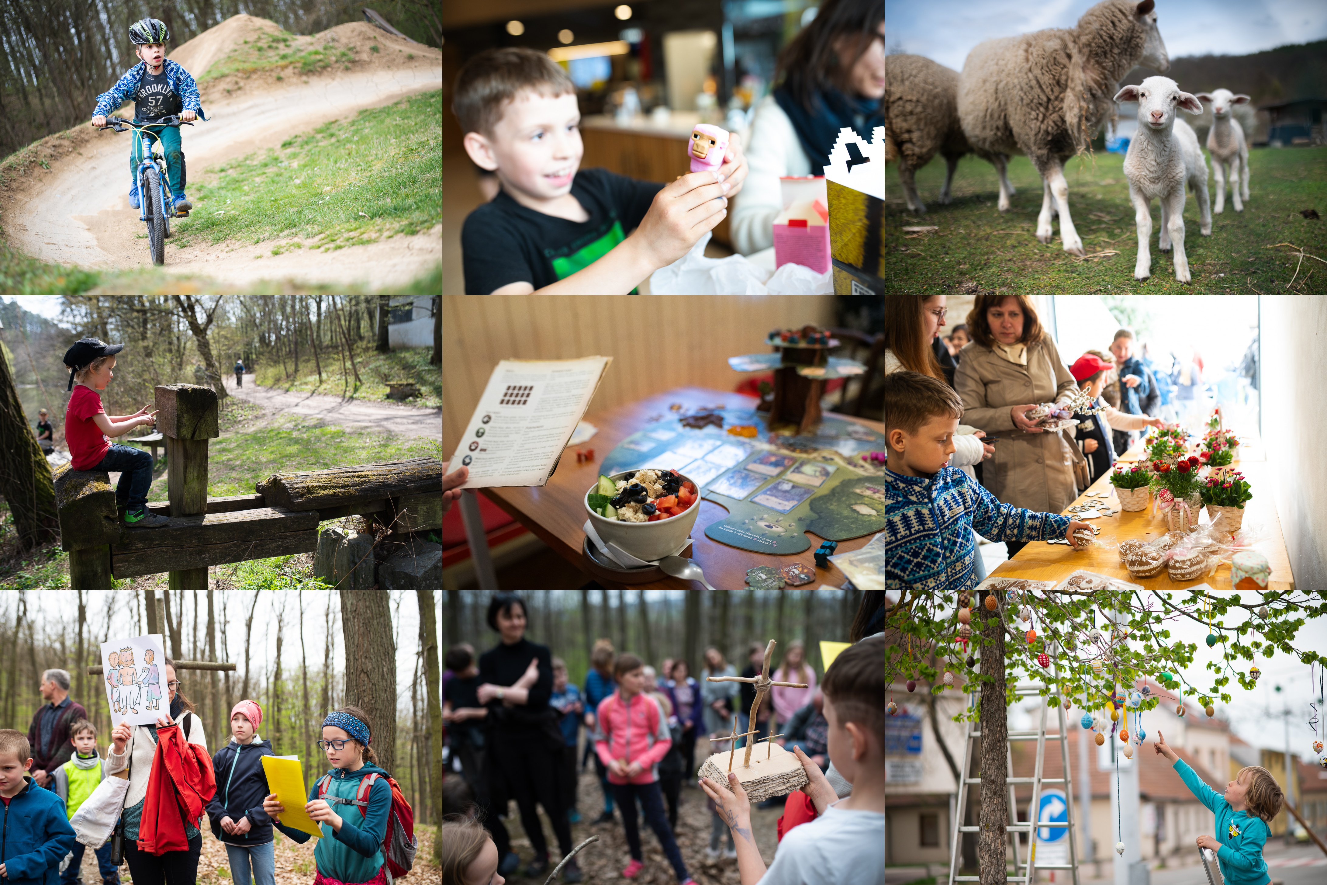 Ráďa občas opatrně nakoukne i do dirt parku / Dokážou naše děti ješte poznat rozdíl mezi Minecraft ovečkou... / ....a skutečnou ovečkou? / Viky sedí zombíkovi na hlavě a kouká se endrmenovi do očí / V Divukraji (pardon, vlastně v čajovně Za Zrcadlem) mají fakt super pohanku s uzeným tofíčkem / Tak které vajíčko bude asi nejsladší? / Verunka se ochotně chopila čtení a na mě zbyla rola držáku / Ráďa hrdě předvádí svůj výtvor, který dal pořádnou práci / A támhleto vajíčko jsem maloval já!