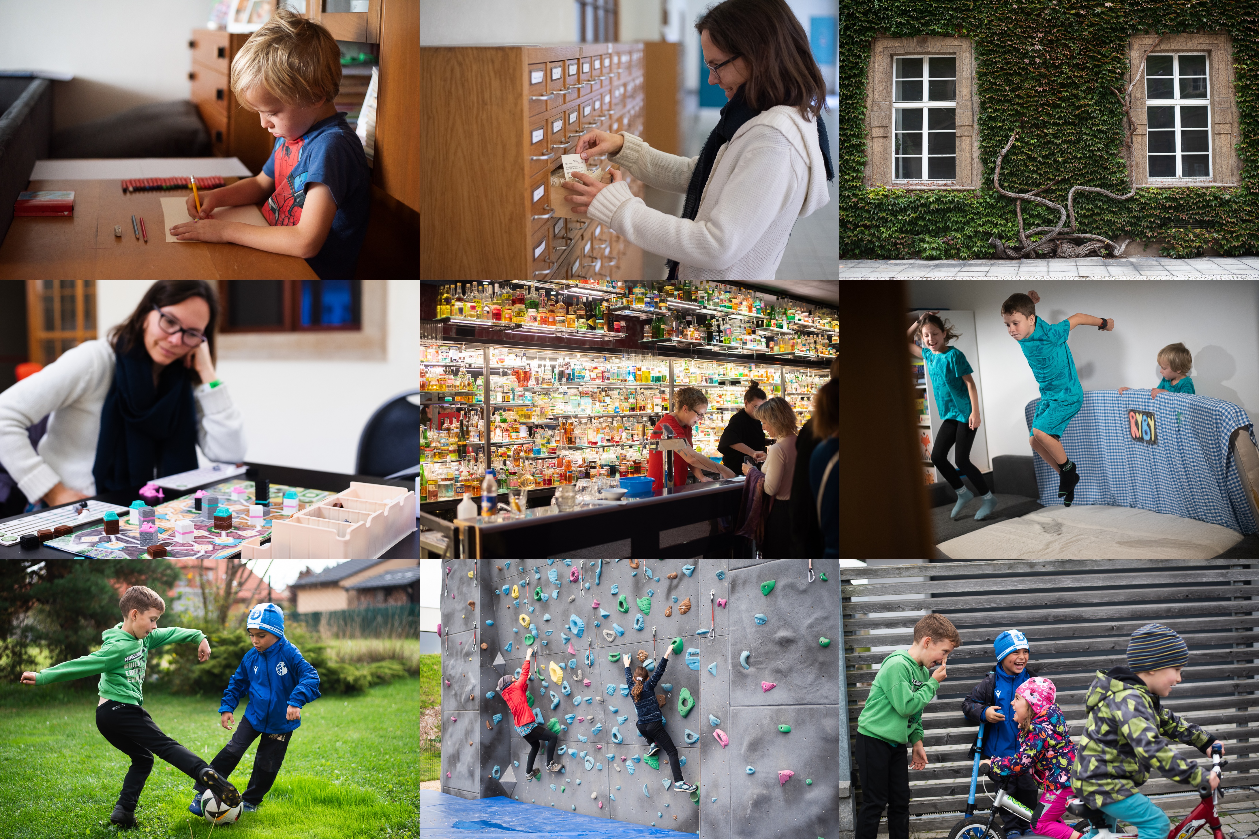 Malířský koutek připraven / Katalog v Klementinu nás zaujal / Stejně jako nádherně porostlý dvorek / My jsme tu ale byli zejména hrát - zde domečky, které lákají k nakousnutí / V býválém multikině Galaxie vyrostl mimo jiné tento zajímavý bar / A - to je náhodička - v Praze zase měla koncert kapela Ryby zrovna když my jsme tam byli! / Fotbalisti / Horolezkyně- ehm :) / To jsme na ty naše rodiče ale pěkně vyzráli!