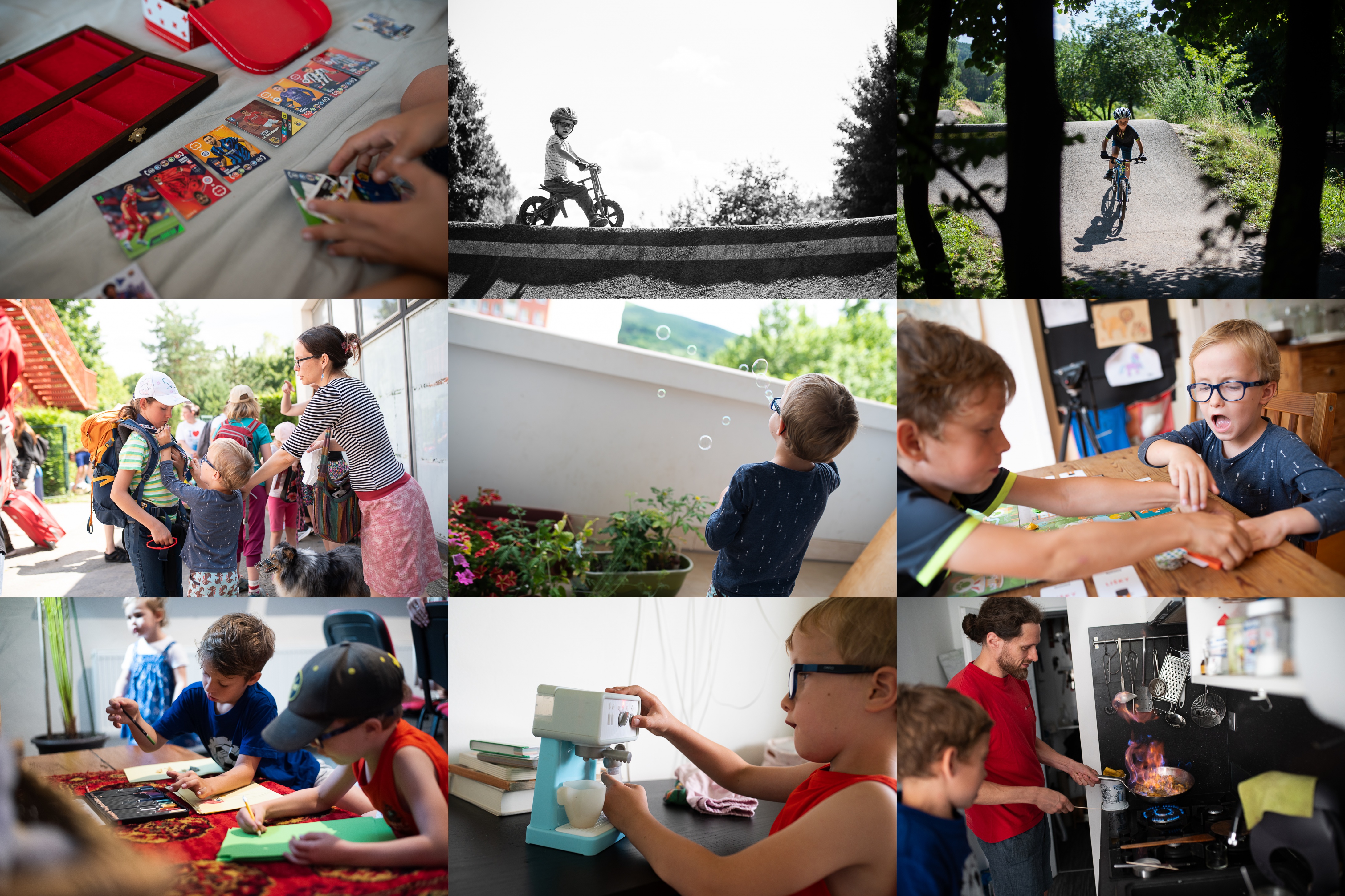 Oblíbená kratochvíle - třídění fotbalistů / Pane, není vám tam nahoře trošku ouzko? / Naprosté soustředění / Po návratu z tábora je potřeba Verunku ochránit jak před náporem civilizace, tak i nenechavých bratrů / Bublina, bublina z mýdla, letí, ač nemá křídla / Aby to nevypadalo, že je u nás hraní deskových her vždycky zalilté sluncem / V kostele - kreslířská dílna / V některých rodinách připravují své děti na budoucnost skutečně zodpovědně / Ráďa byl svědkem svého prvního flambování