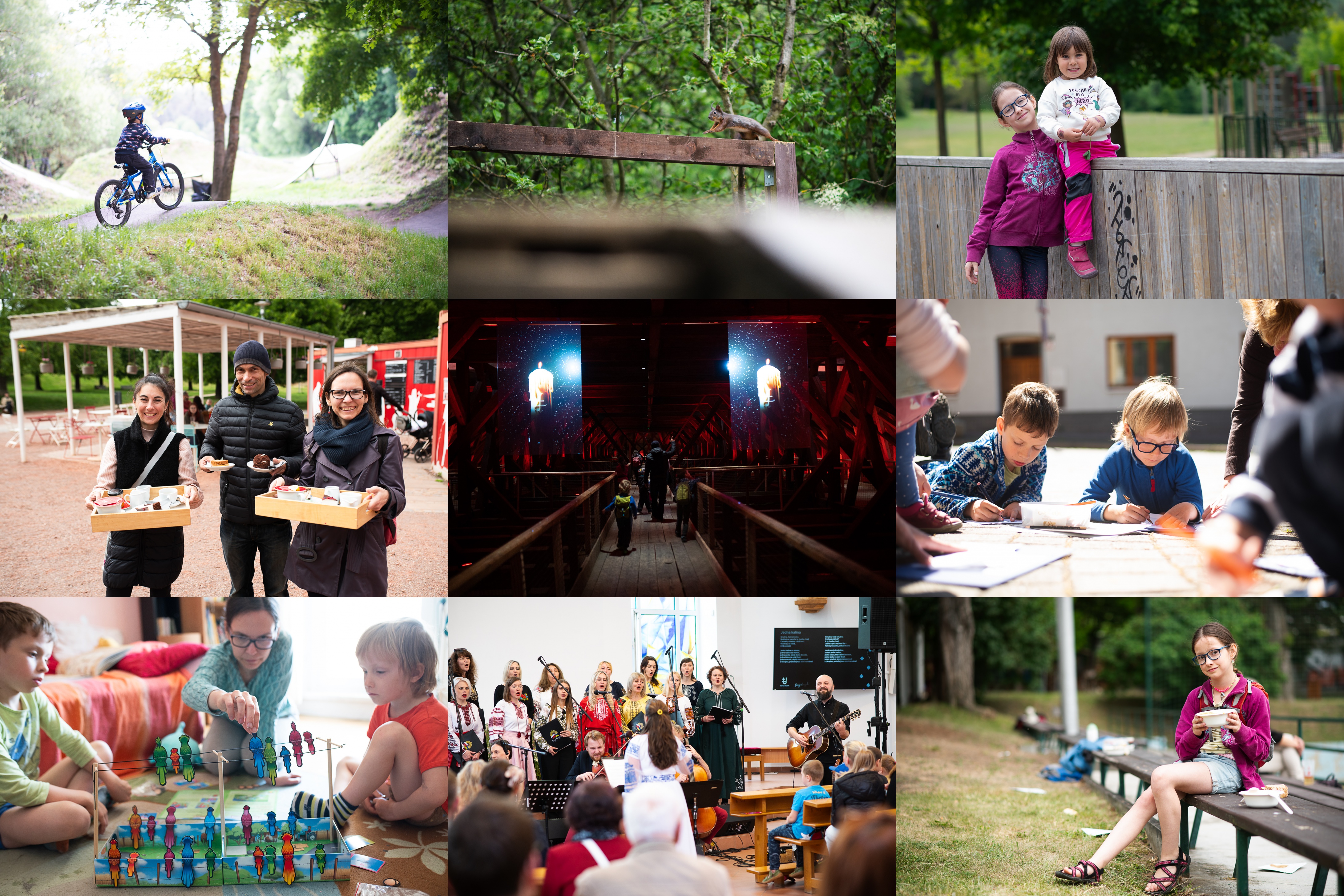 I Matýsek dostal příležitost vyzkoušet si náš pravý brněnský pumptrack / V dirt parku je živo! / Sestřenice / Kafíčko, moučníček! / Atmosférická procházka pod krovy chrámu sv. Jakuba / Naši kluci se zapojili do katecheze, a dokonce oba! / U hry Ptačí napětí je třeba být opravdu ve střehu / Úžasní Pavel Helan a Sonjašnyk / Na farním dni v Žabinách si nás získali výborným gulášem (a mě ještě navíc bezlepkovým chlebem, wow!)