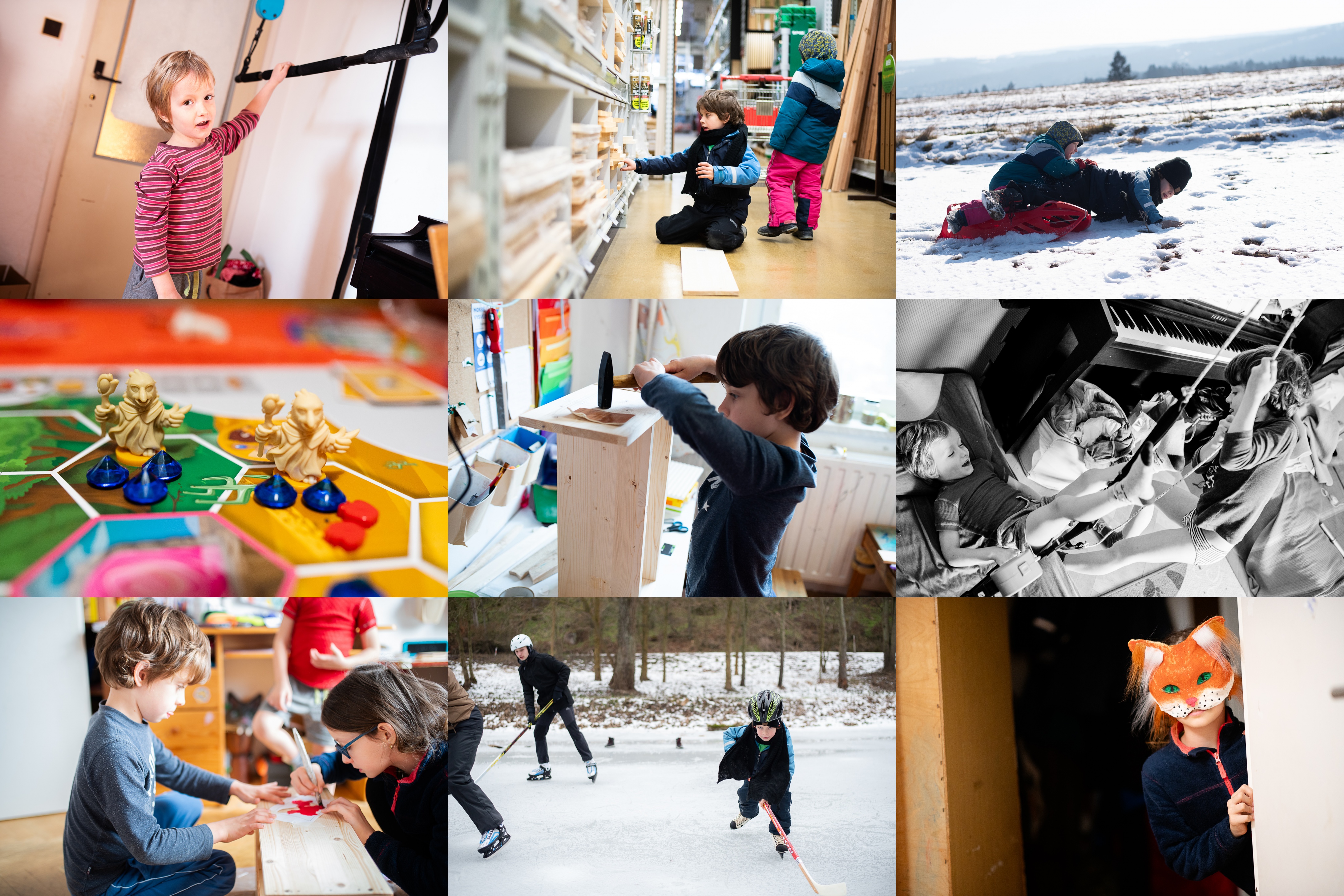 Že bychom si po řánu trochu zacvičili? / Prkénko, prkénko, řekni mi, jsi vhodné na výrobu poličky? / Užíváme sníh, letos asi poslední / Sběrači jablek a safírů jdou do akce / Zde se rodí polička / Velmi improvizovaná domácí tělocvična / Jak krásně spolupracují! (A o tom, že se brzy nato dost hustě o té stejné poličce pohádali, vědět chcete, nebo raději ani ne?) / Ráďa hraje hokej se zápalem sobě vlastním / Máme doma lišku
